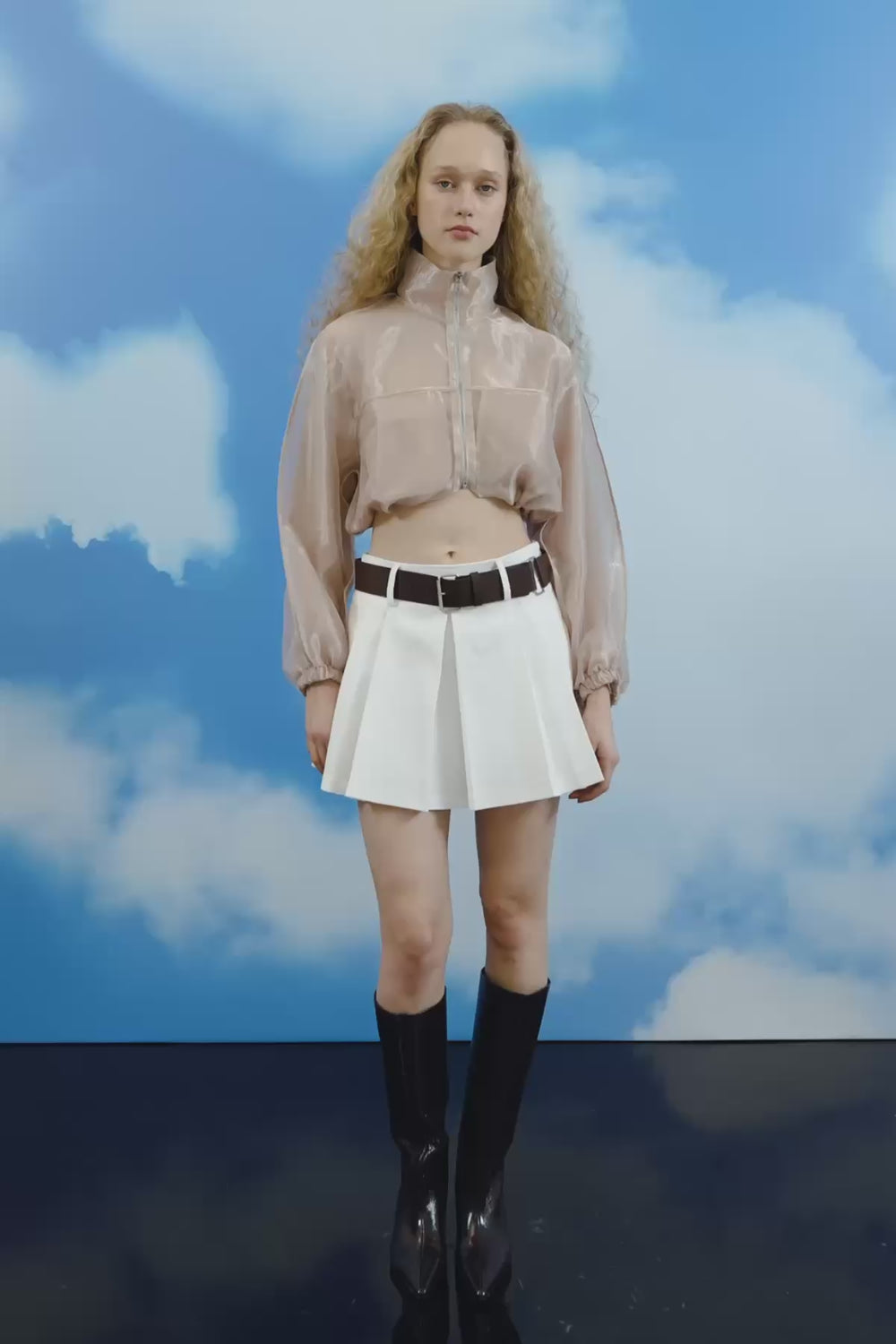 Organze tül detaylı, fermuar kapamalı, yüksek yakalı, uzun kollu, beli lastik ayarlamalı, bomber ceket.