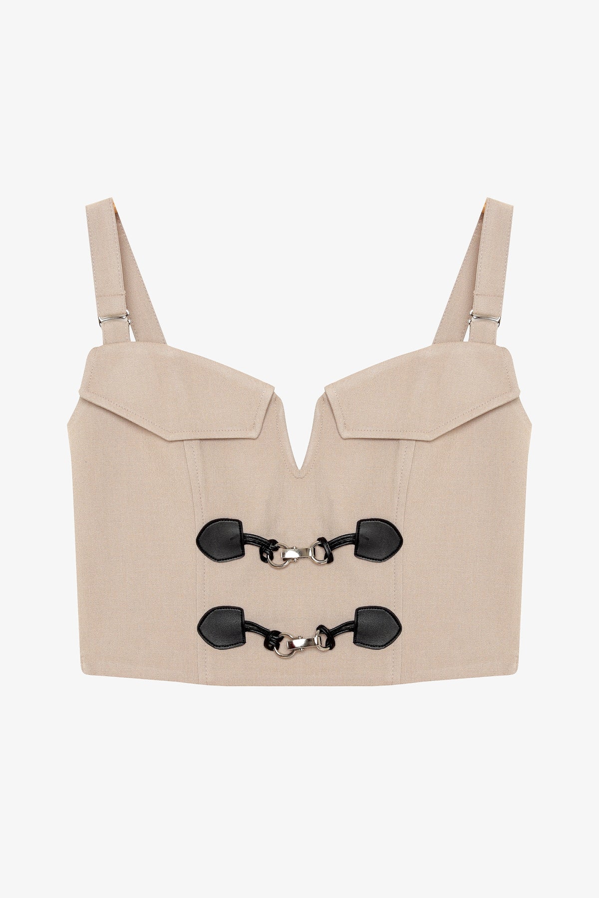 Toka Aksesuarlı Askılı Büstiyer Bluz Bej