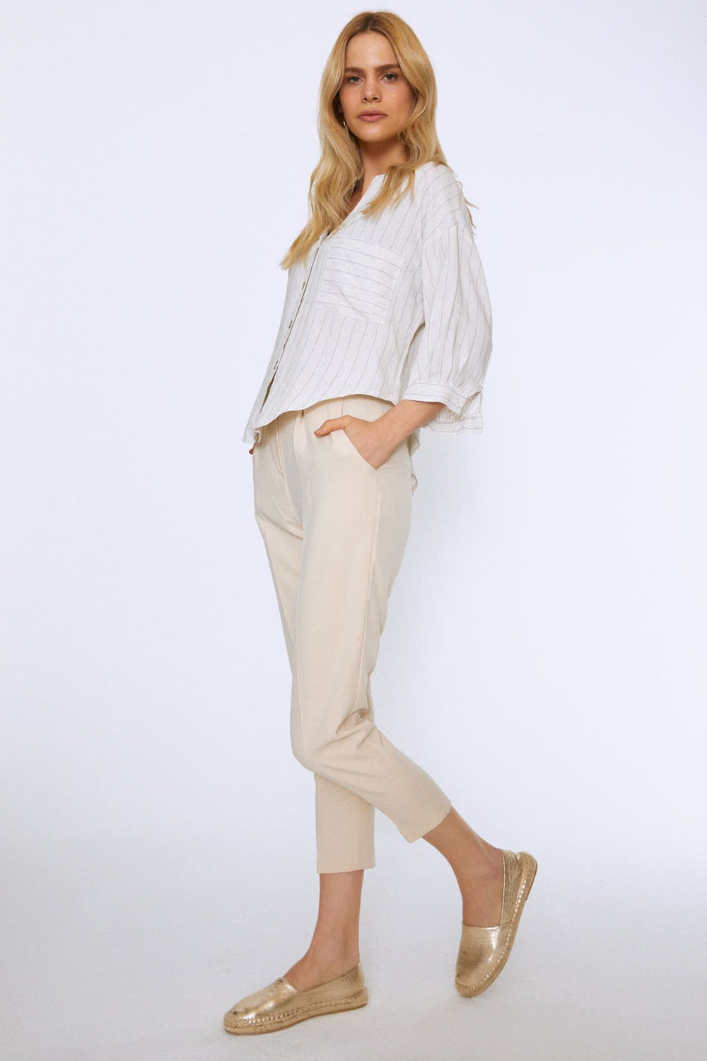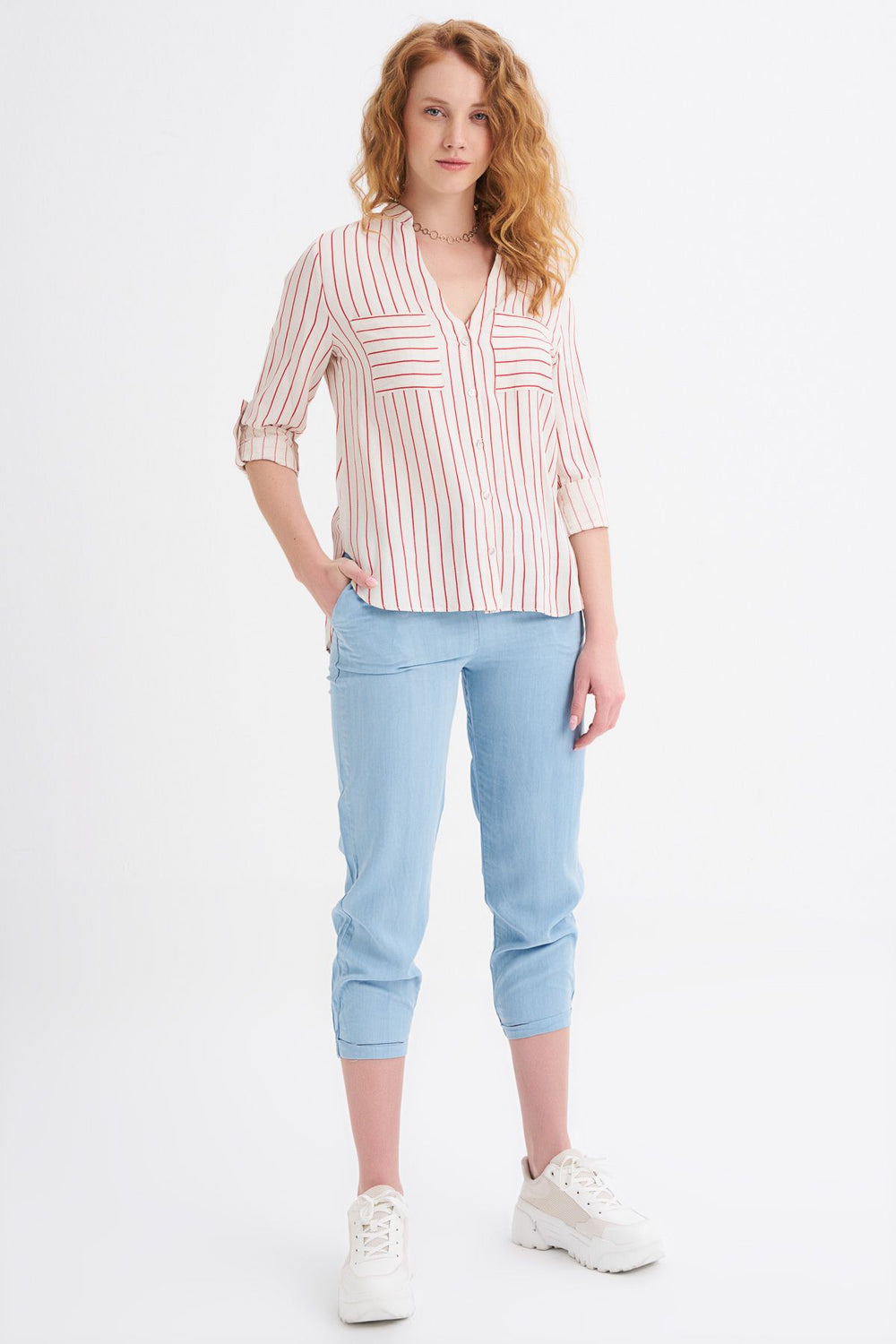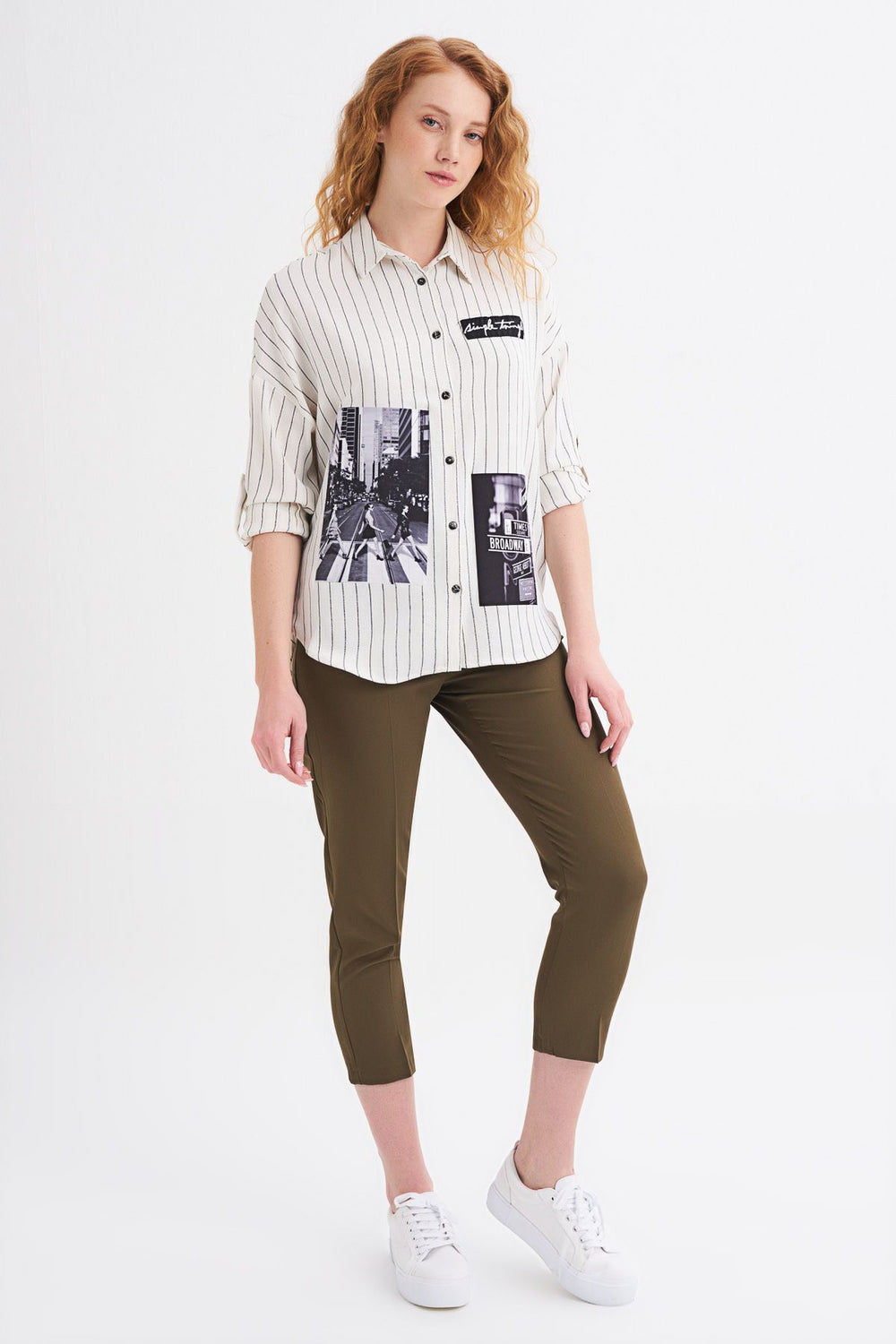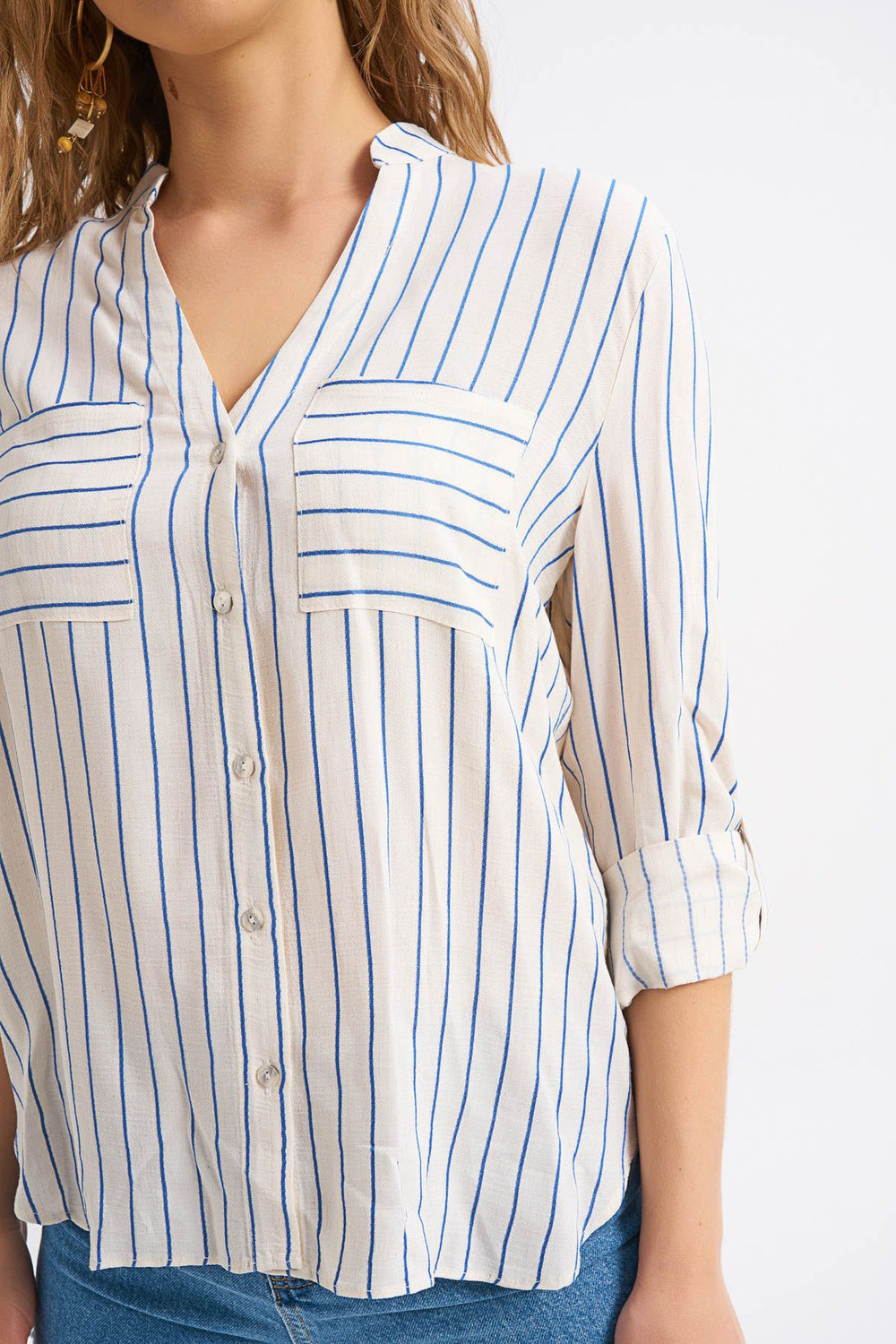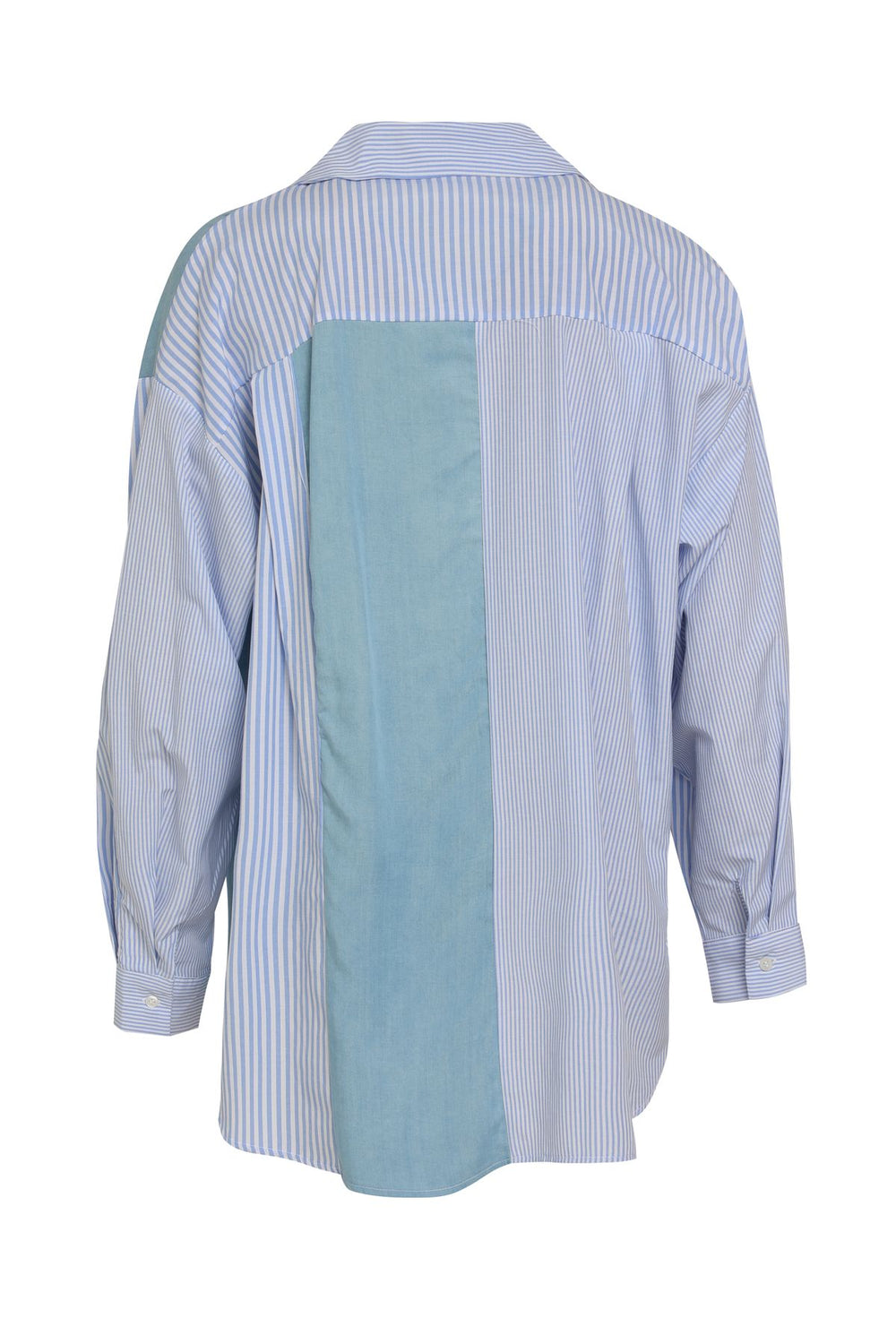 Taş Aksesuarlı Çizgili Oversize Gömlek Mavi