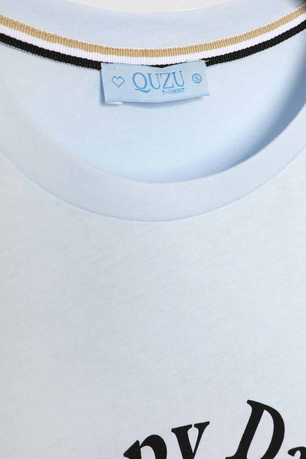 Ayıcık Baskılı Kısa Kol Tişört Mavi