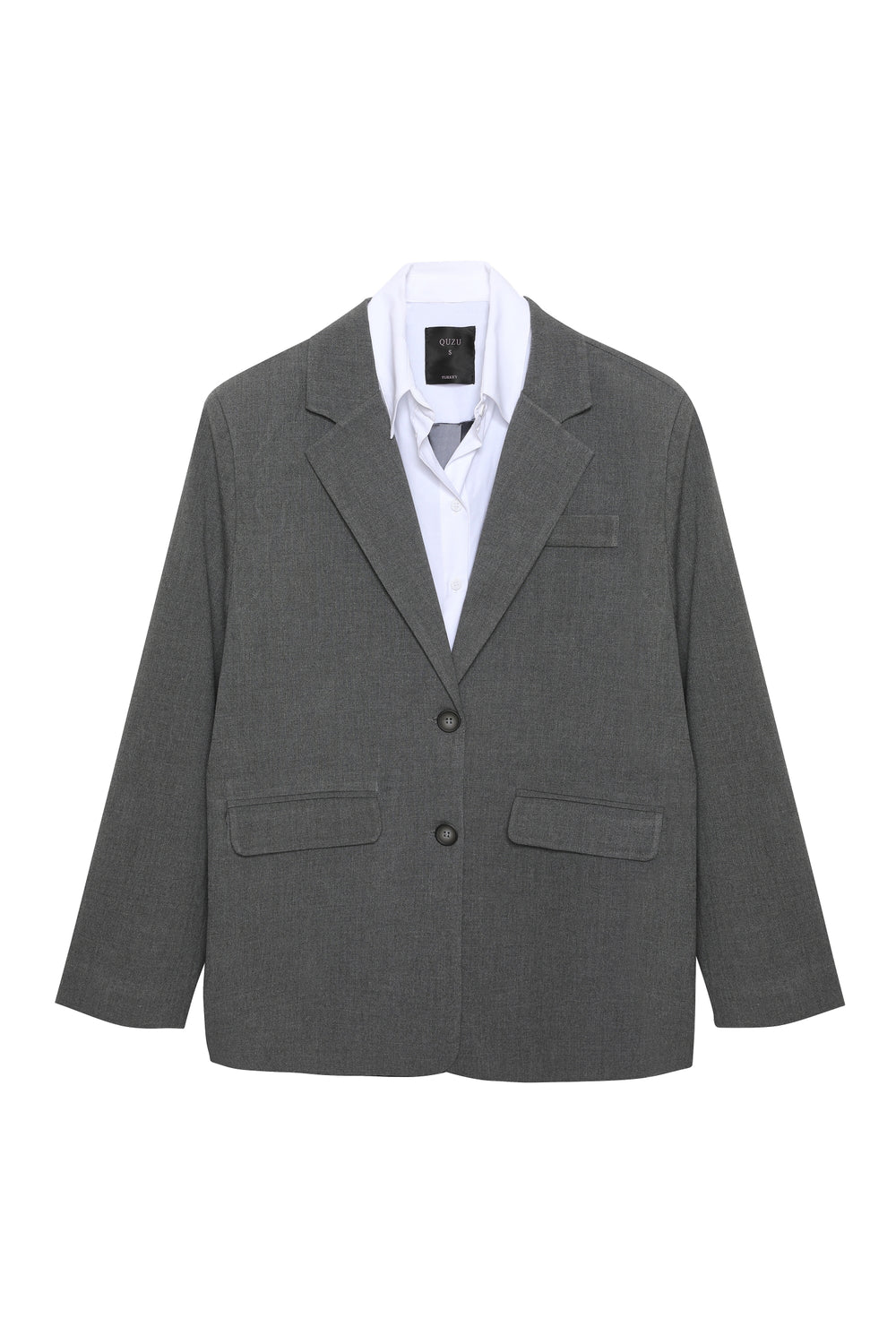 Gömlek Detaylı Sırtı Baskılı Blazer Ceket Gri