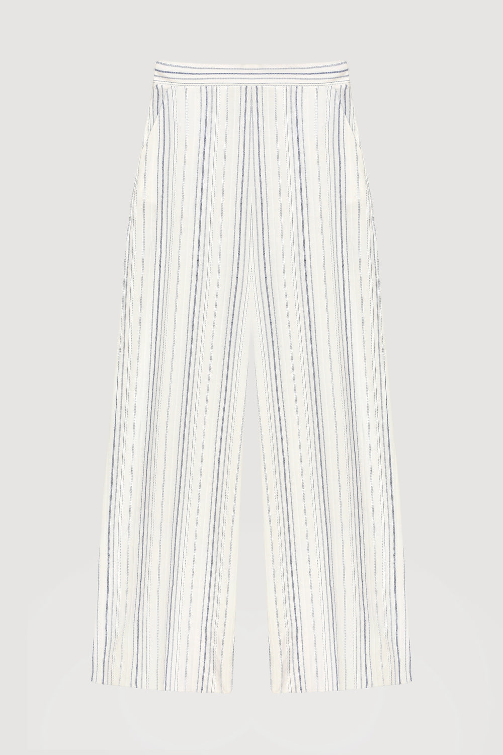 İnce Çizgili Yüksek Bel Pantolon Ekru