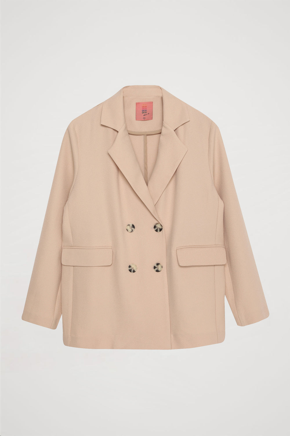 Kruvaze Yaka Çift Düğmeli Blazer Ceket Bej