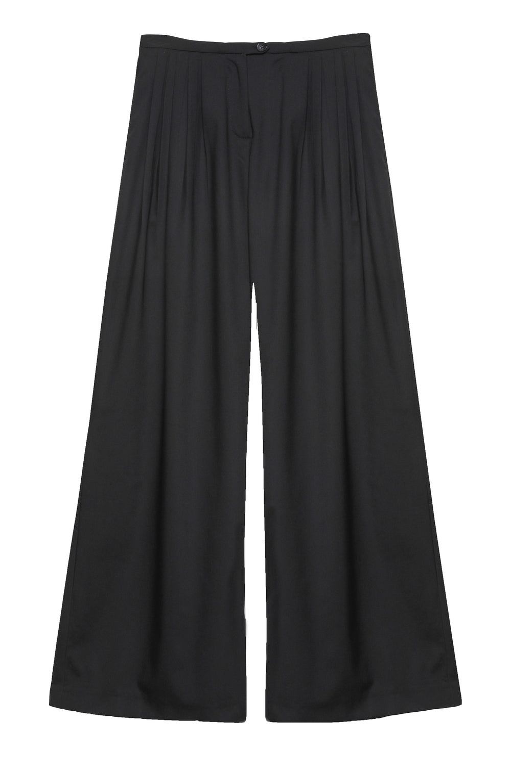 Yüksek bel,pile detaylı, geniş paça pantolon.