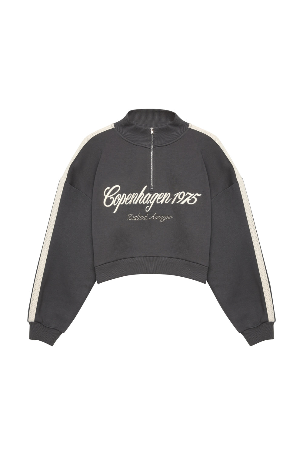 Şerit Detaylı Fermuarlı Crop Sweatshirt Antrasit