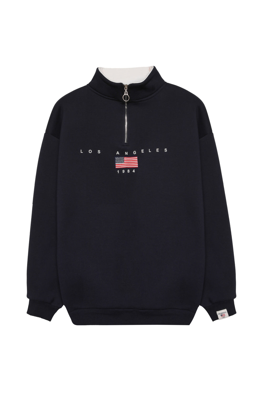 Yakası Fermuarlı Los Angeles Sweatshirt Lacivert