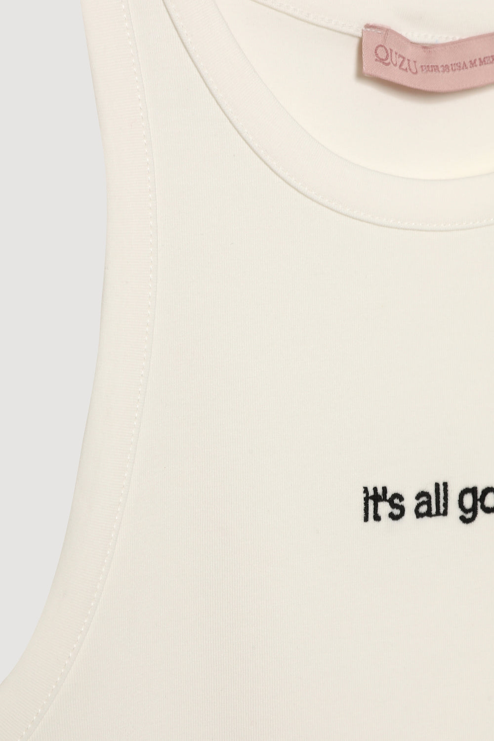 Halter yaka, sıfır kol, ön kısmında " it's all good." nakış yazı baskılı, rahat kalıp, sportif görünüm sunan basic atlet.