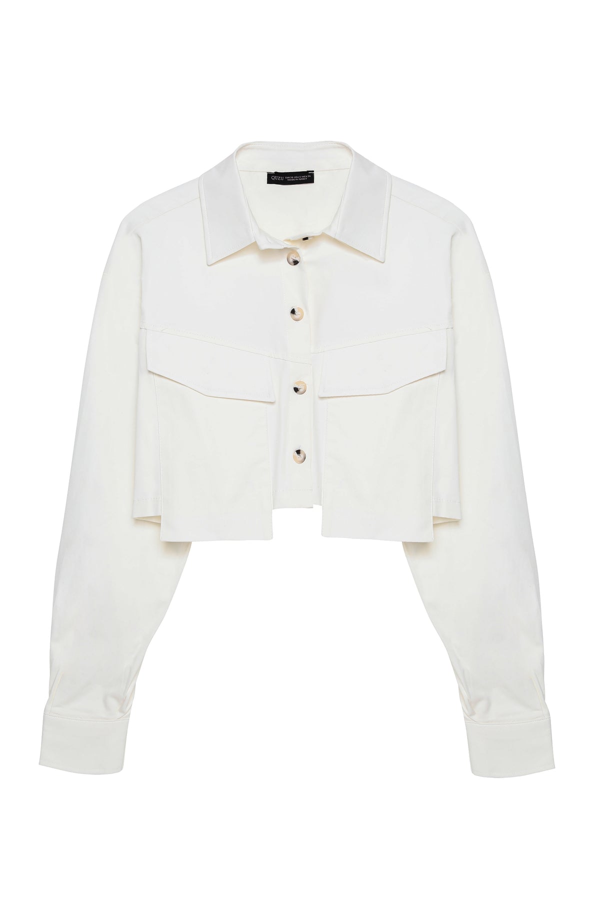 Pocket Detailed Crop Shirt Ecru