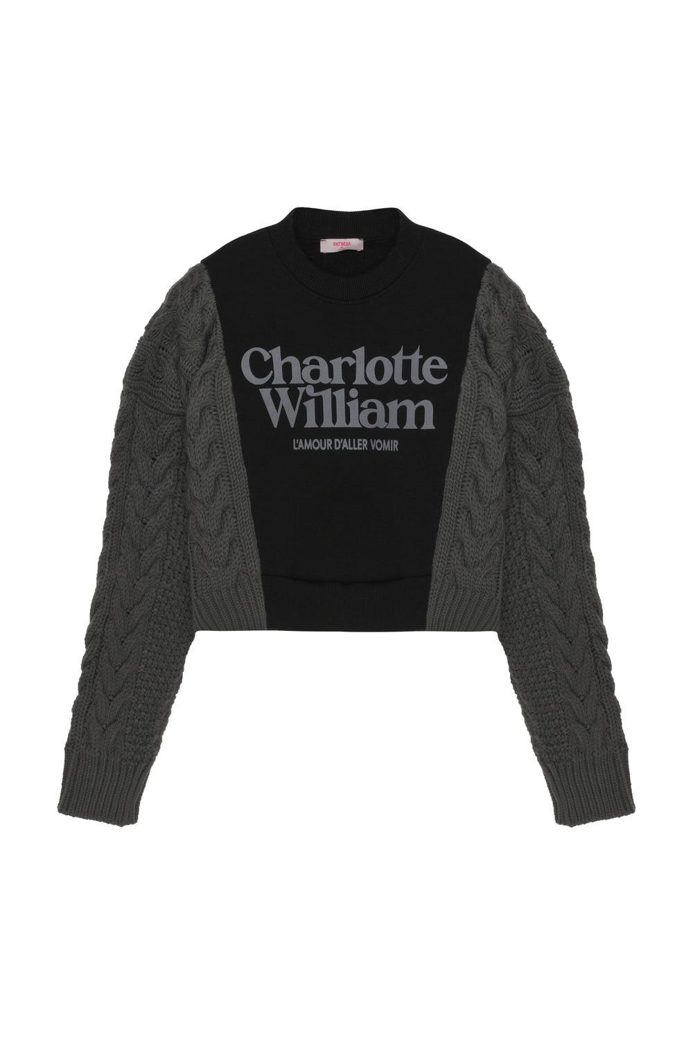 Triko Kol Yazı Baskılı Sweatshirt Siyah