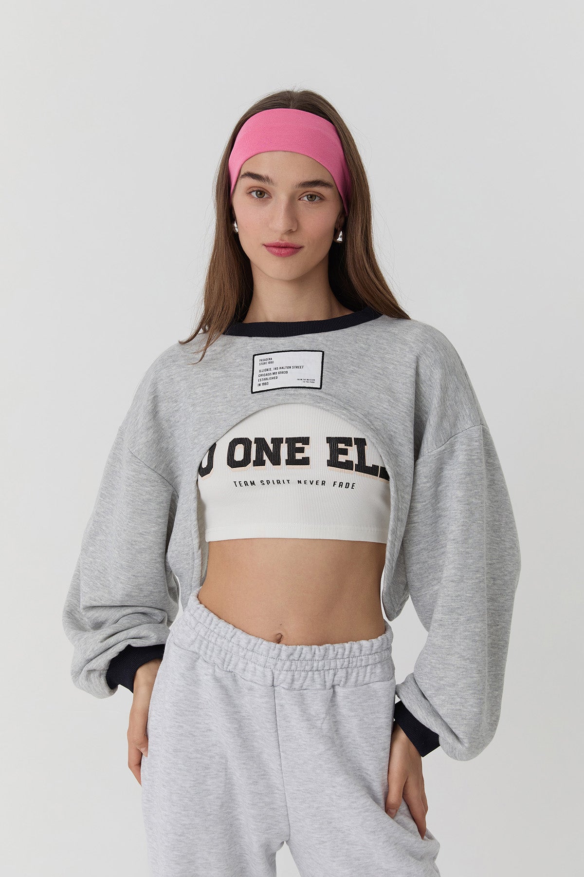 Bİsİklet yaka, uzun kollu, İçİ yazı baskılı atletlİ, crop sweatshİrt.