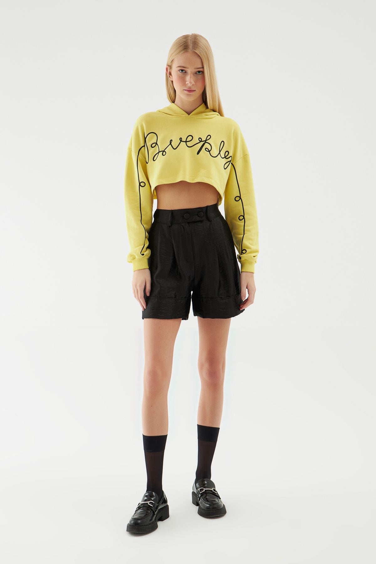 We have added a sweatshirt model with embroidery details to the sweatshirt model that you must have in your wardrobe! Complete your look by combining the crop sweatshirt model with its cotton content with high waist trousers and jogger trousers models! The hooded sweatshirt model draws attention with its color as well as its embroidery detail. This season, the cropped hooded sweatshirt model that will enliven your look is a candidate to be your favorite piece.