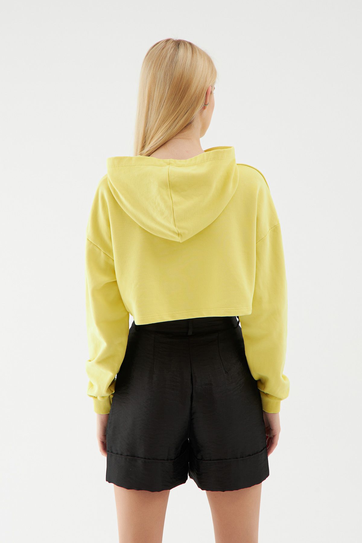 Hooded Crop Sweatshirt Yellow