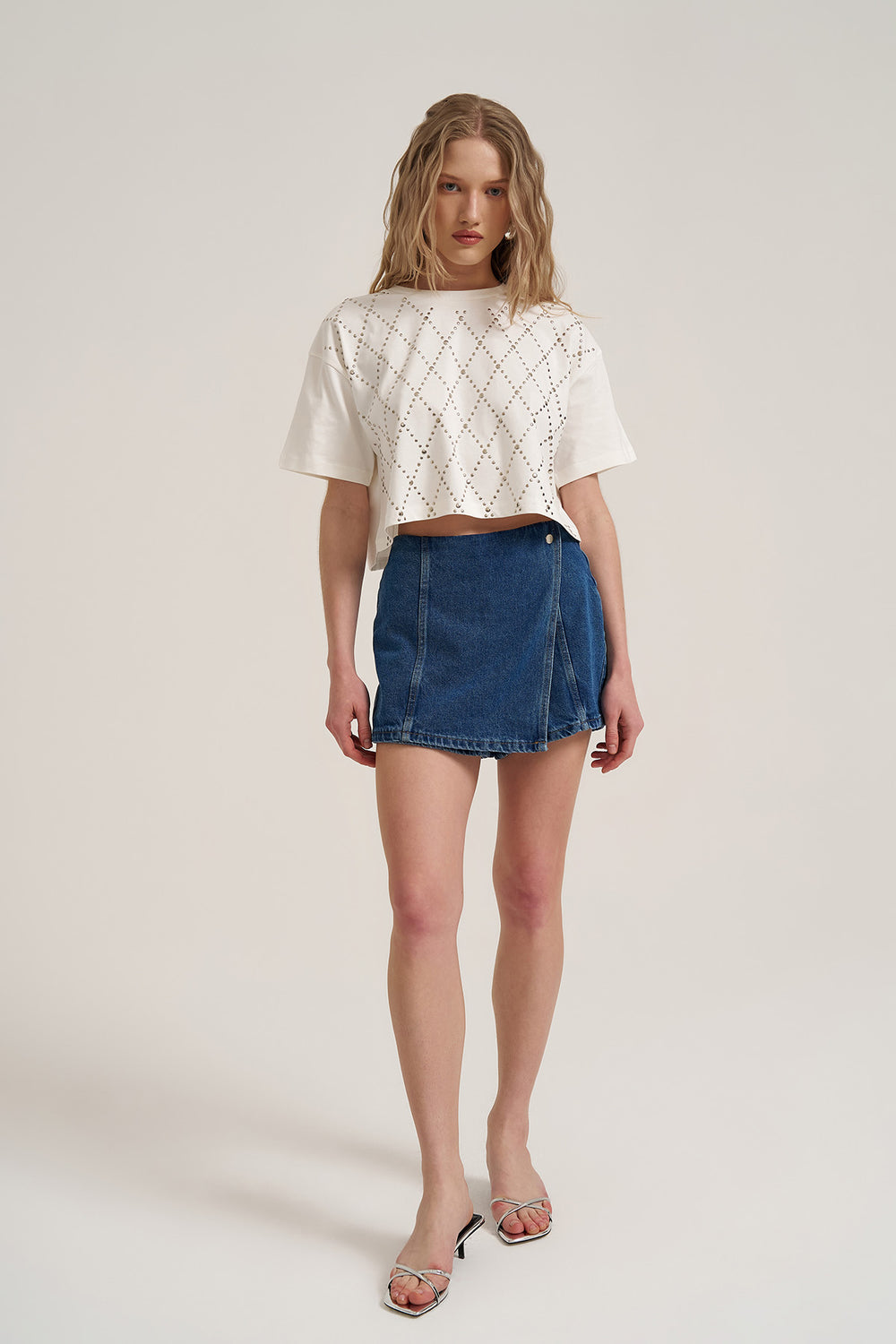 Trok Detaylı Kısa Kol Tişört Ekru