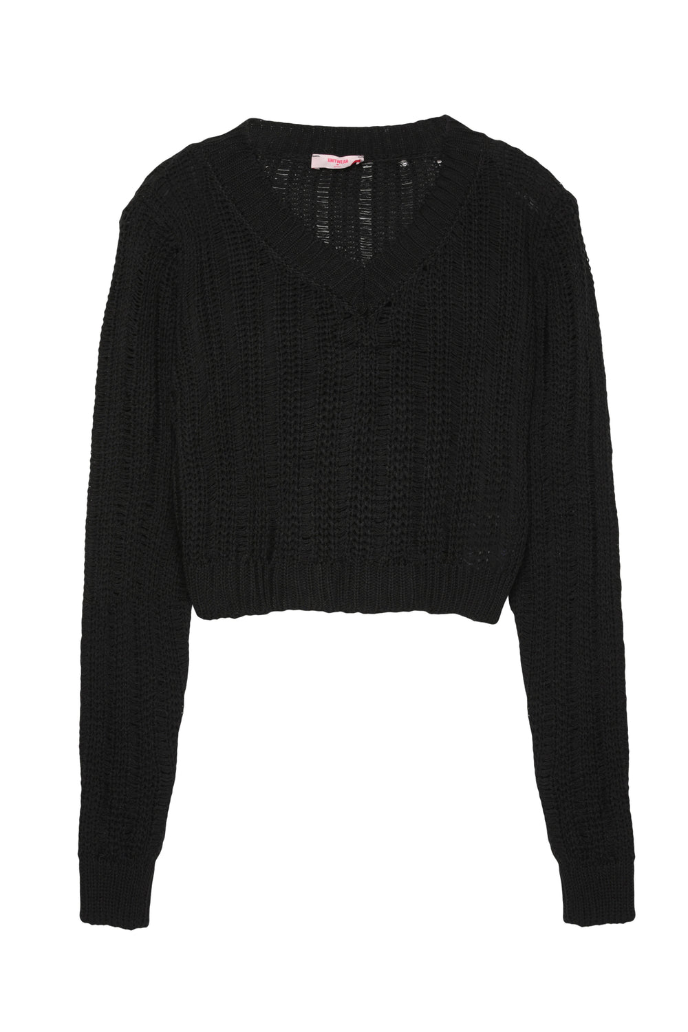 V yaka, uzun kollu, vatkalı, crop kesim örgü triko.