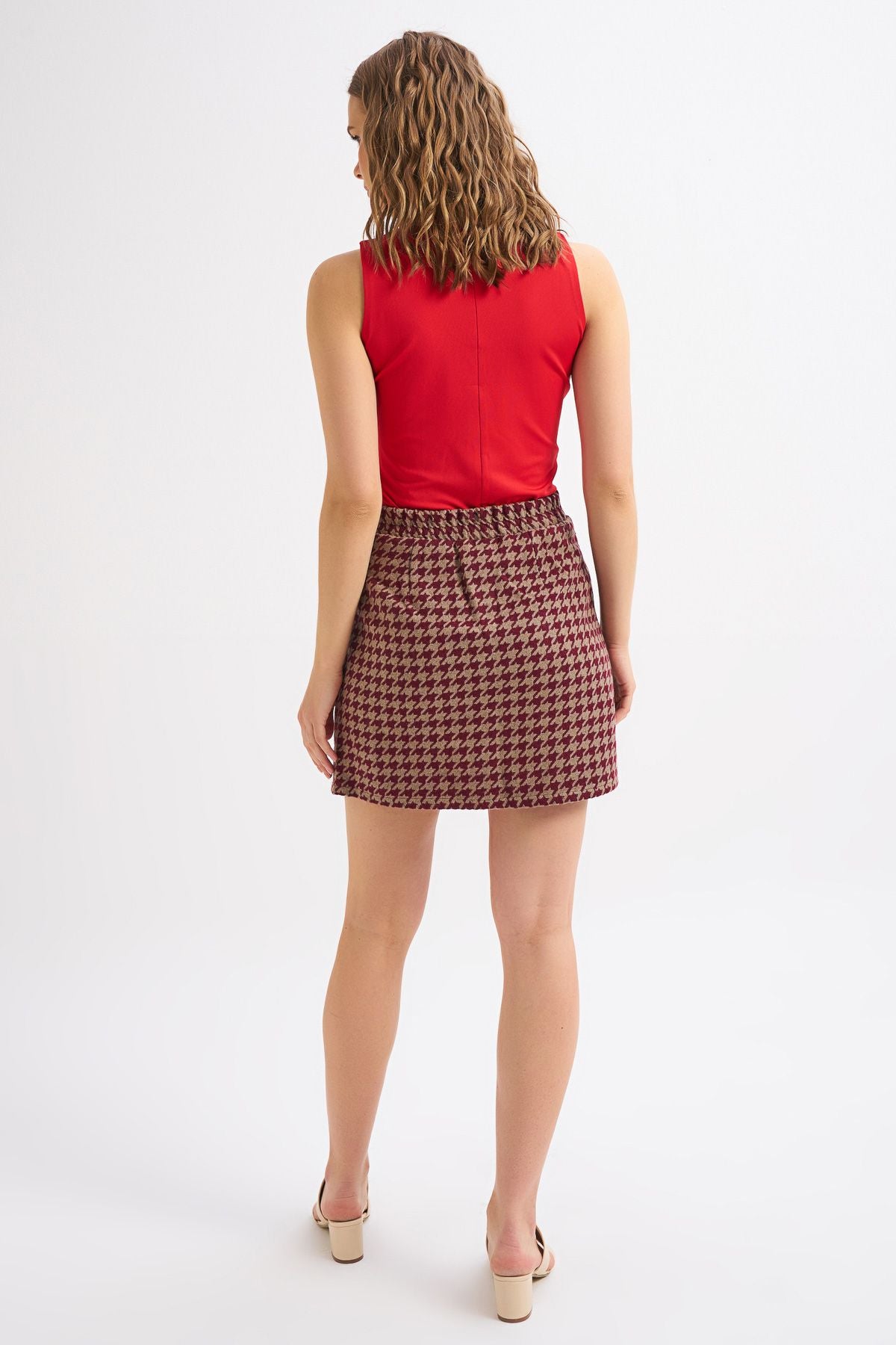Patterned Mini Skirt Claret Red
