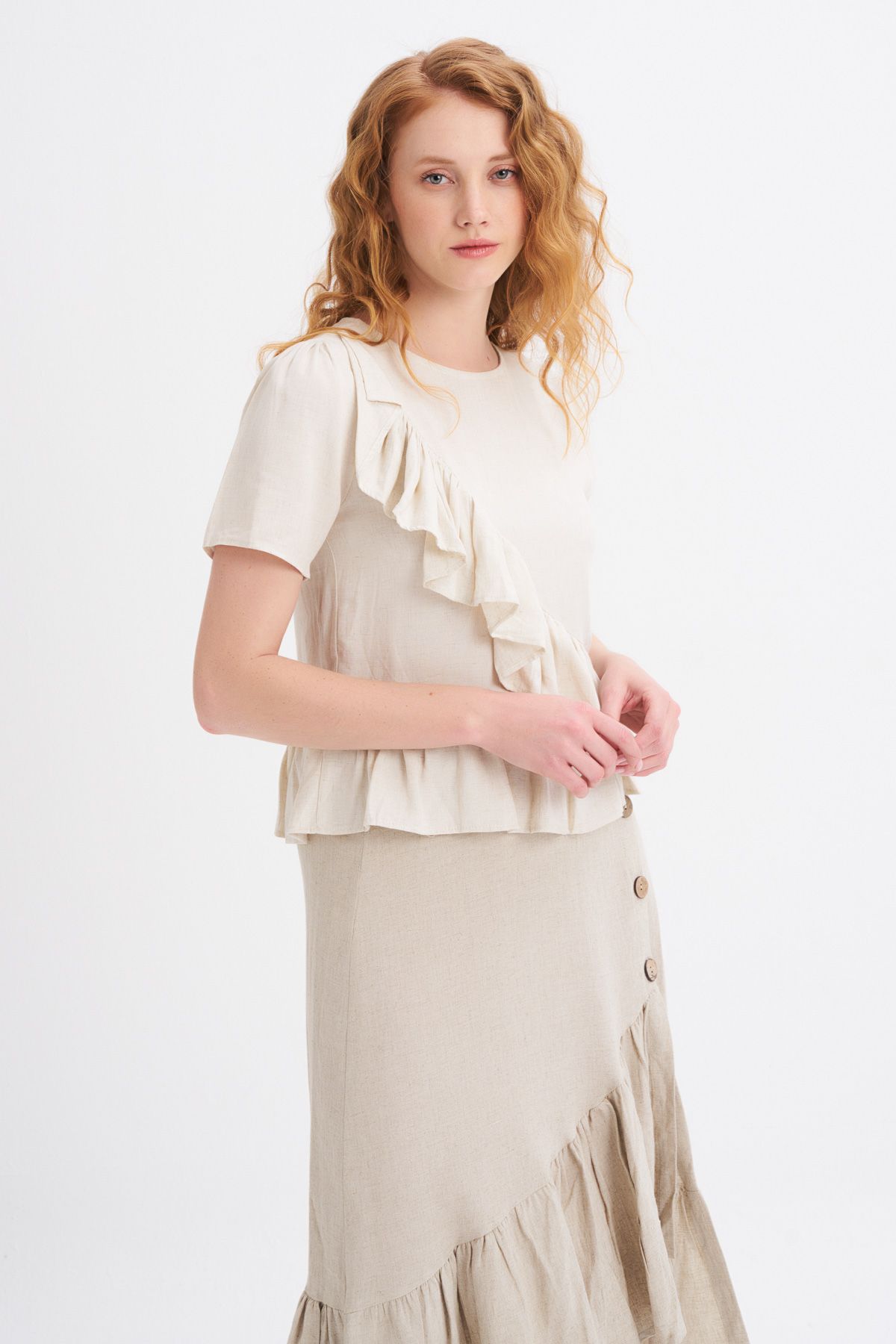 Frilly Linen T-Shirt Natural