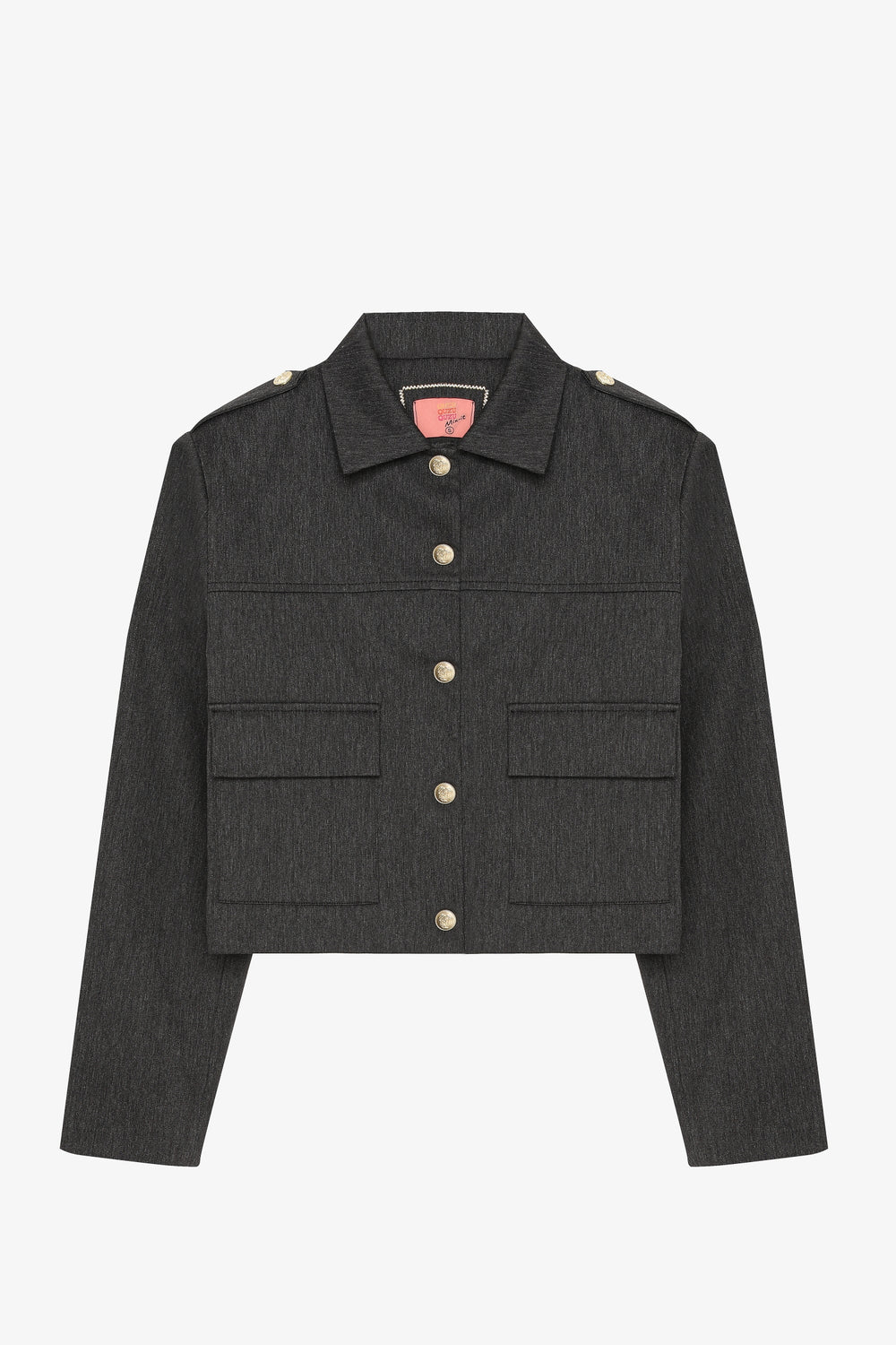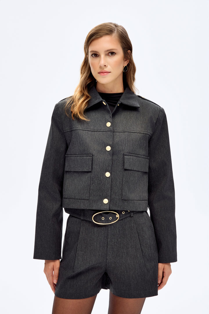 Apoletli Gold Düğmeli Crop Ceket Antrasit