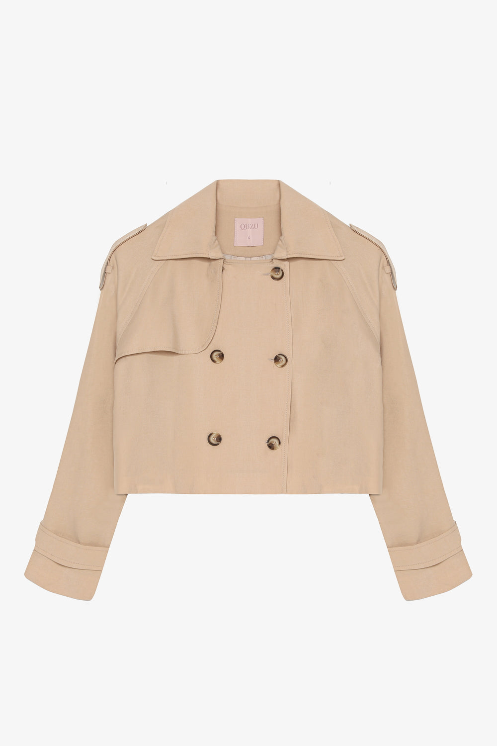 Çift Düğmeli Kruvaze Yaka Kısa Trençkot Bej