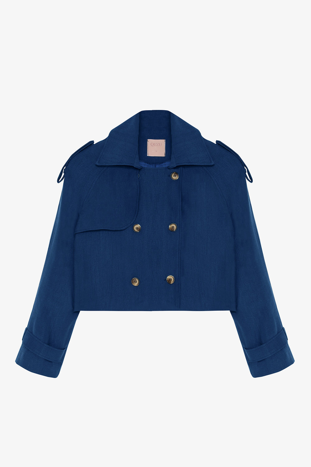 İçi kendi renginden astarlı, uzun kollu, kruvaze düğme kapamalı, kolu ve omzu kemer detaylı, kısa boy trençkot.
