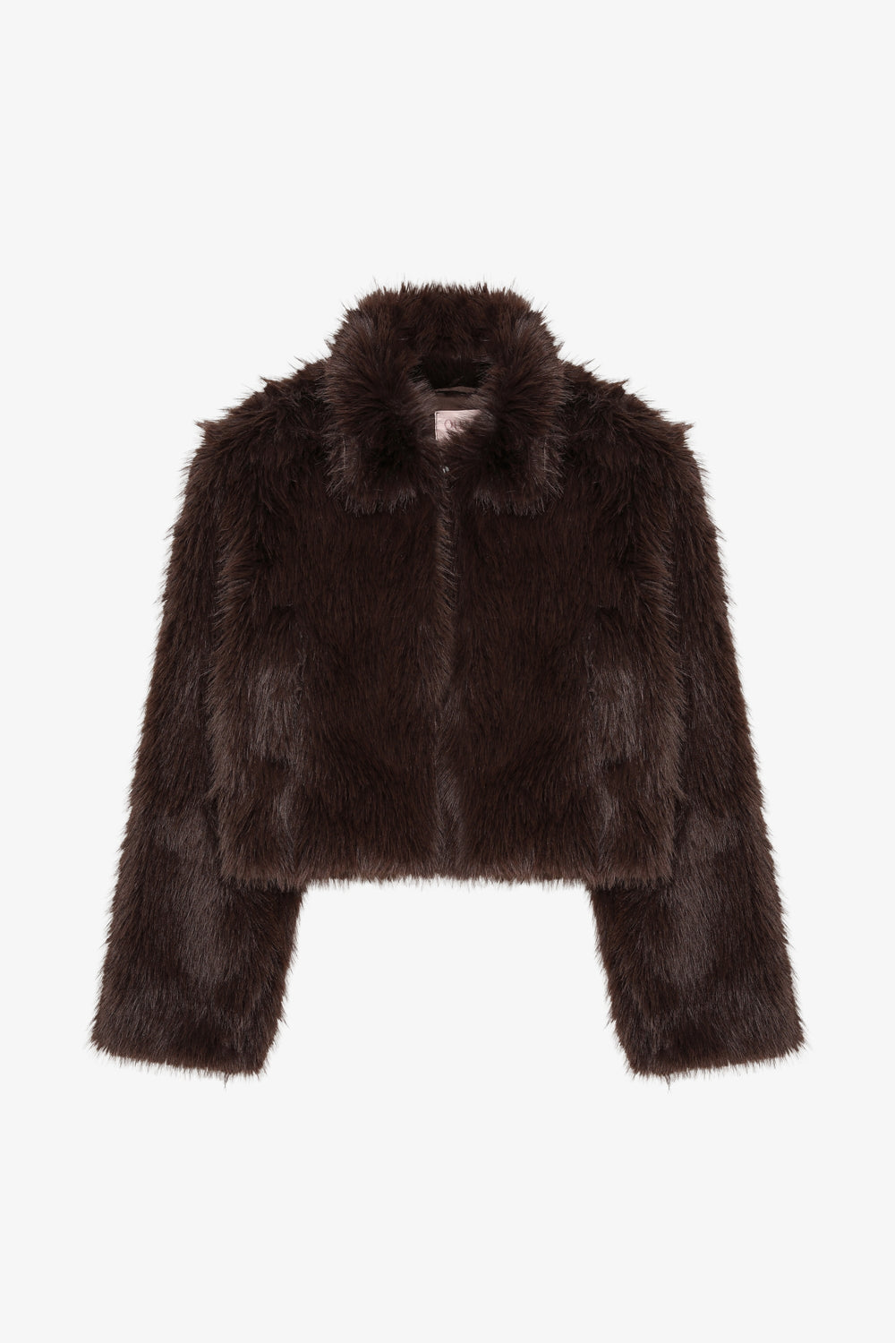 Fermuarlı Kısa Kürk Ceket Kahverengi