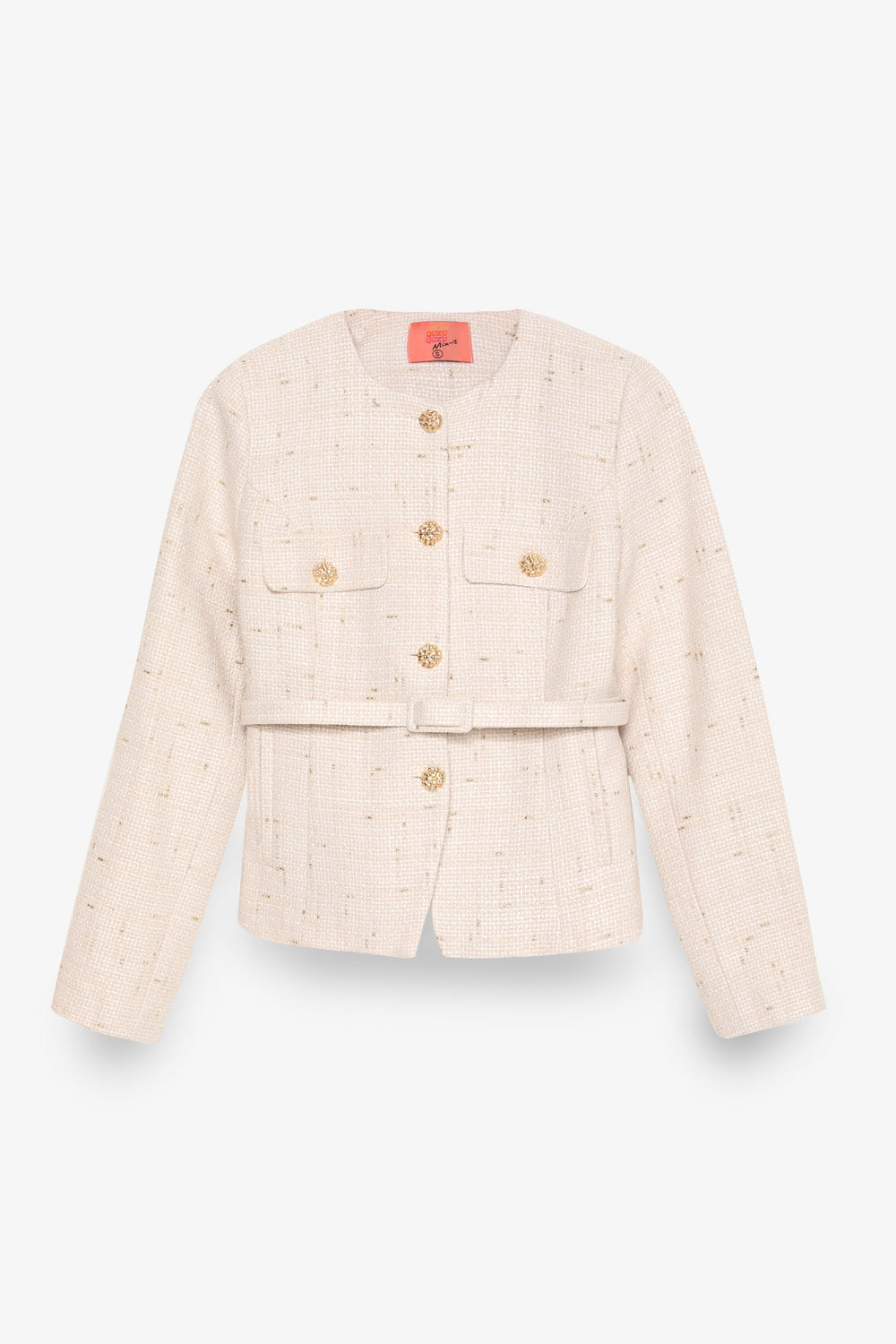Kemer Detaylı Düğmeli Tüvit Ceket Bej