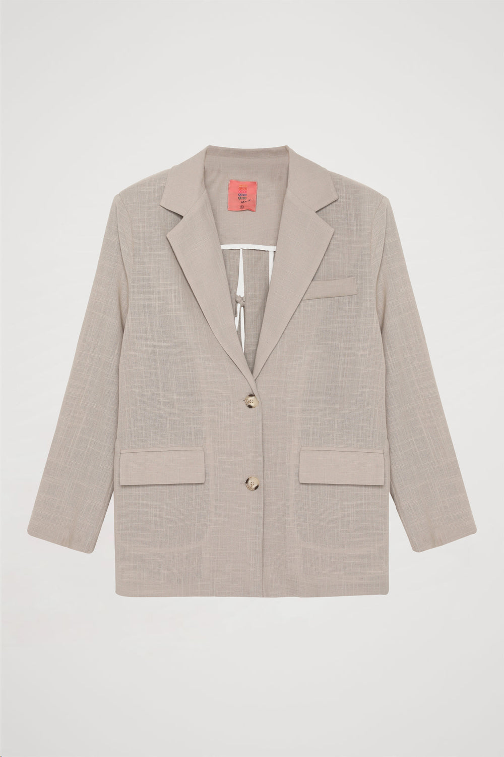 Kol Düğme Aksesuarlı İnce Çizgili Blazer Ceket Bej