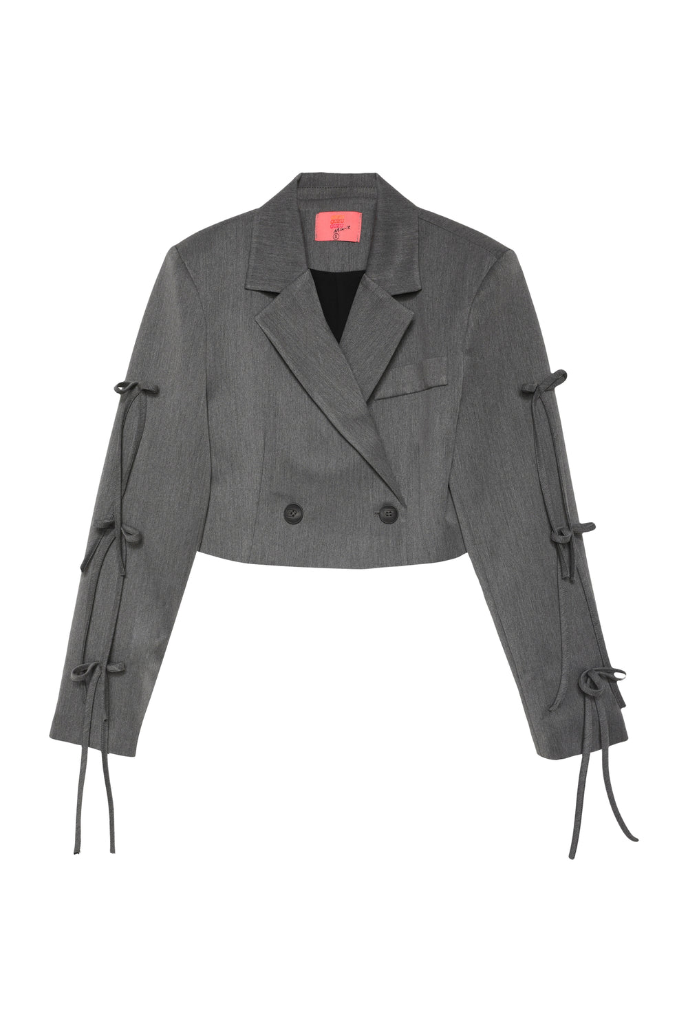 Kolları Fiyonklu Crop Blazer Ceket Gri