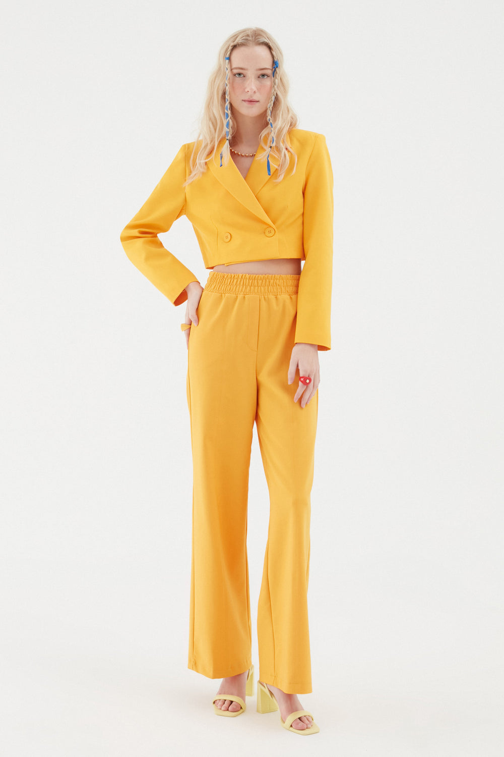 Double Breasted Crop Blazer Jacket Orange