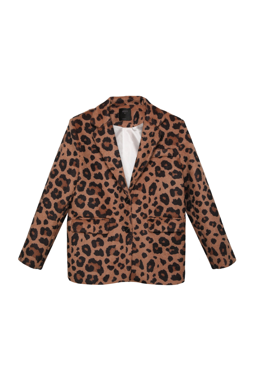 Leopar desenli, içi astarlı, uzun kol, kruvaze yaka, oversize kaşe blazer ceket.
