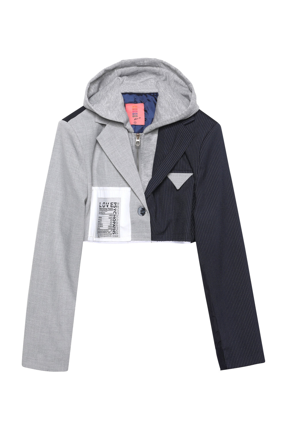 İki renkli, match detaylı, içi astarlı, kapüşonlu crop kesim ceket.