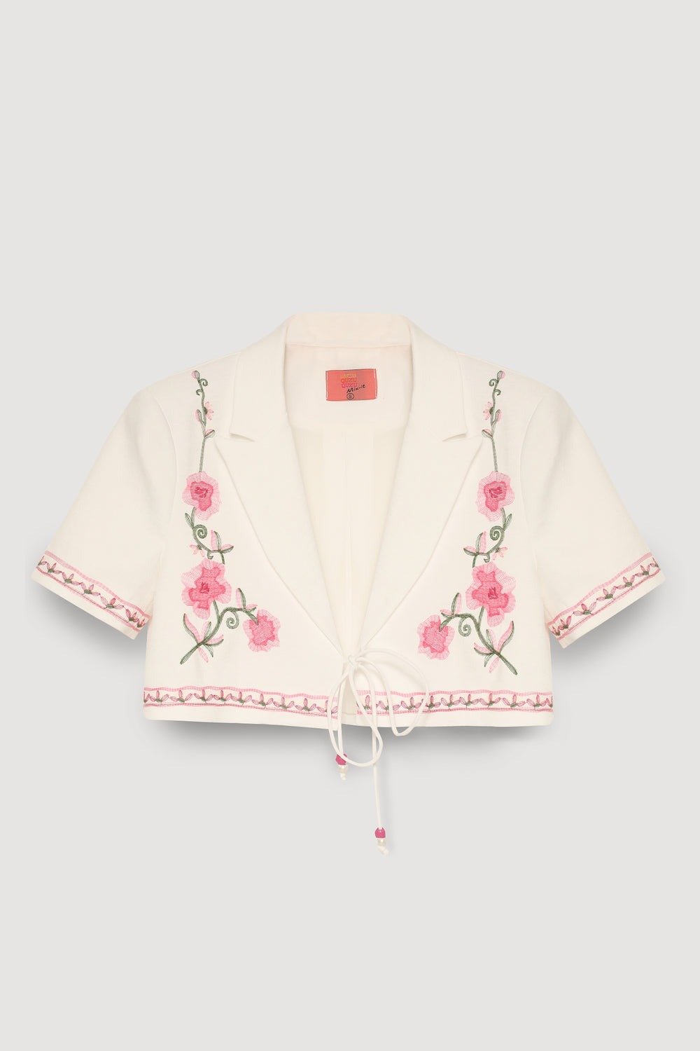 Nakış Çiçek Desenli Kısa Ceket Ekru