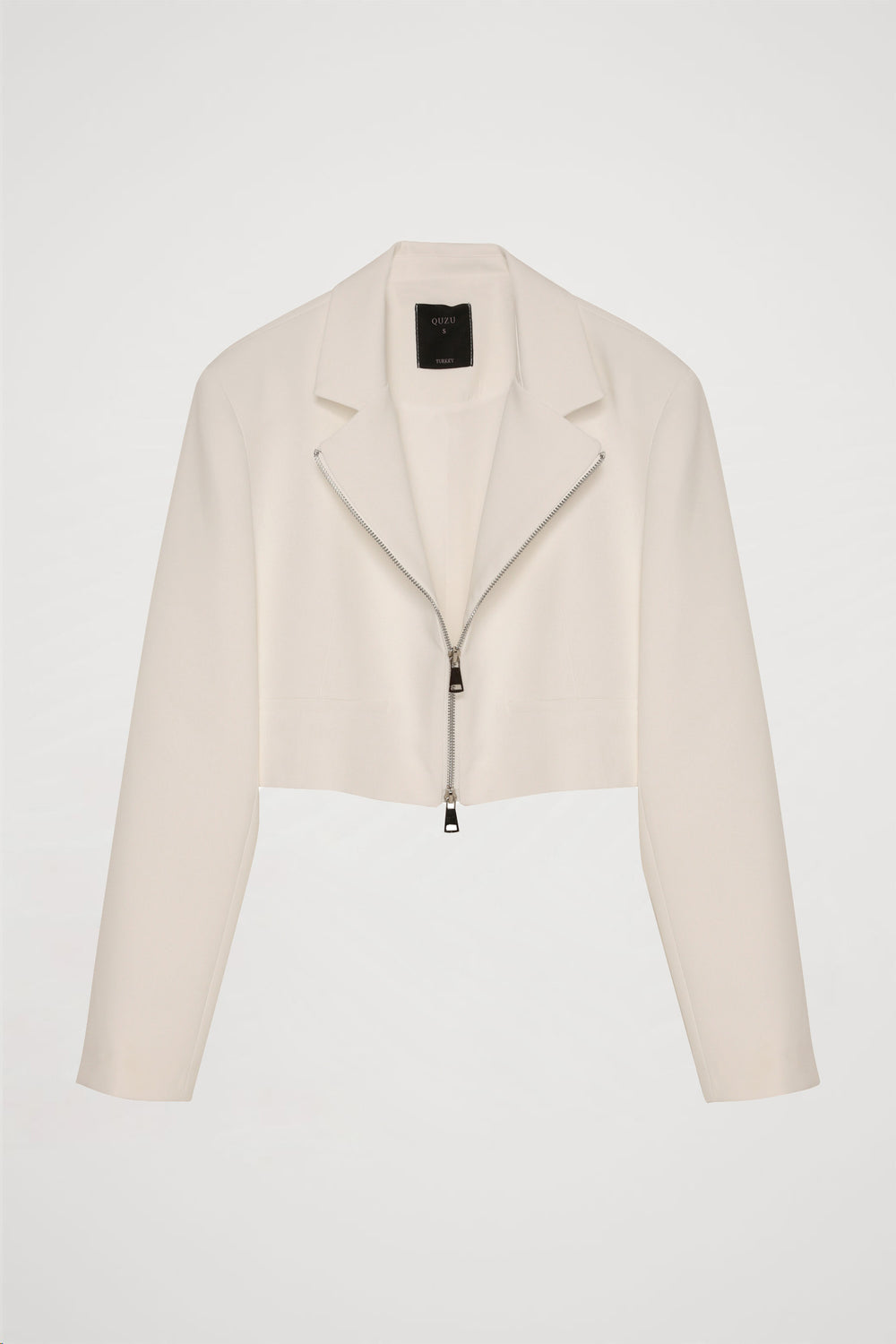 Önden Fermuarlı Crop Blazer Ceket Ekru