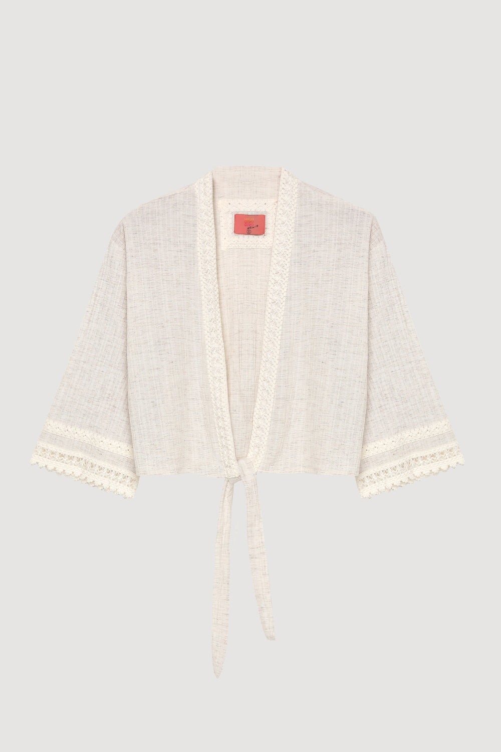 Şerit Dantelli Bağlamalı Kimono Naturel