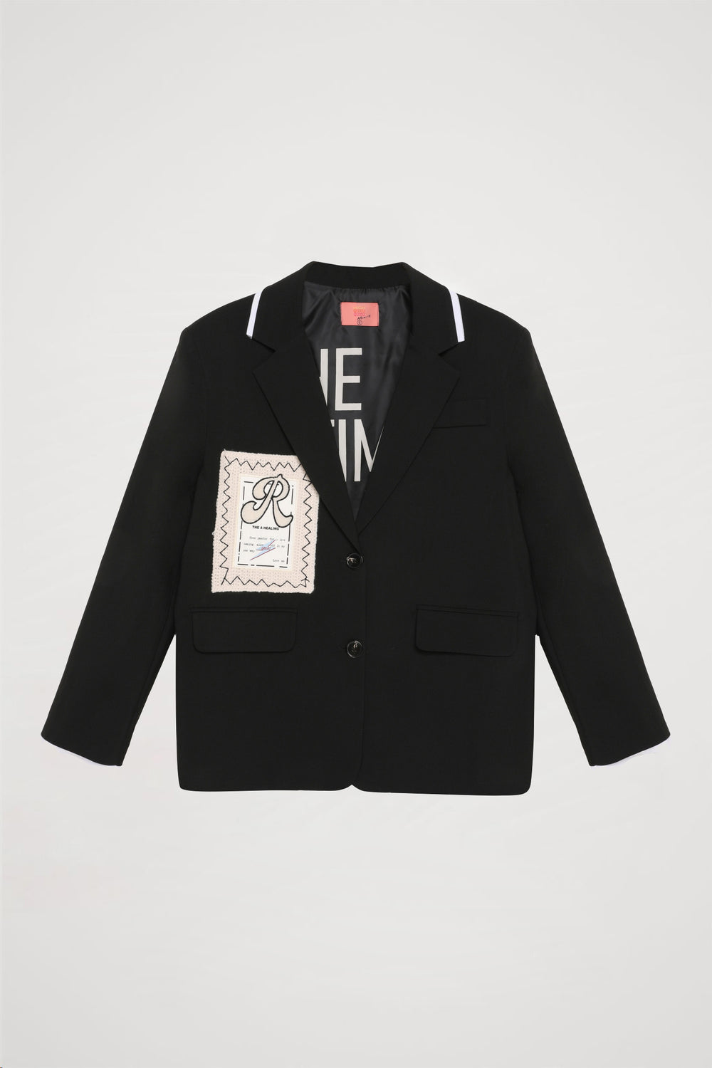 Sırtı Baskılı Arma Detaylı Blazer Ceket Siyah