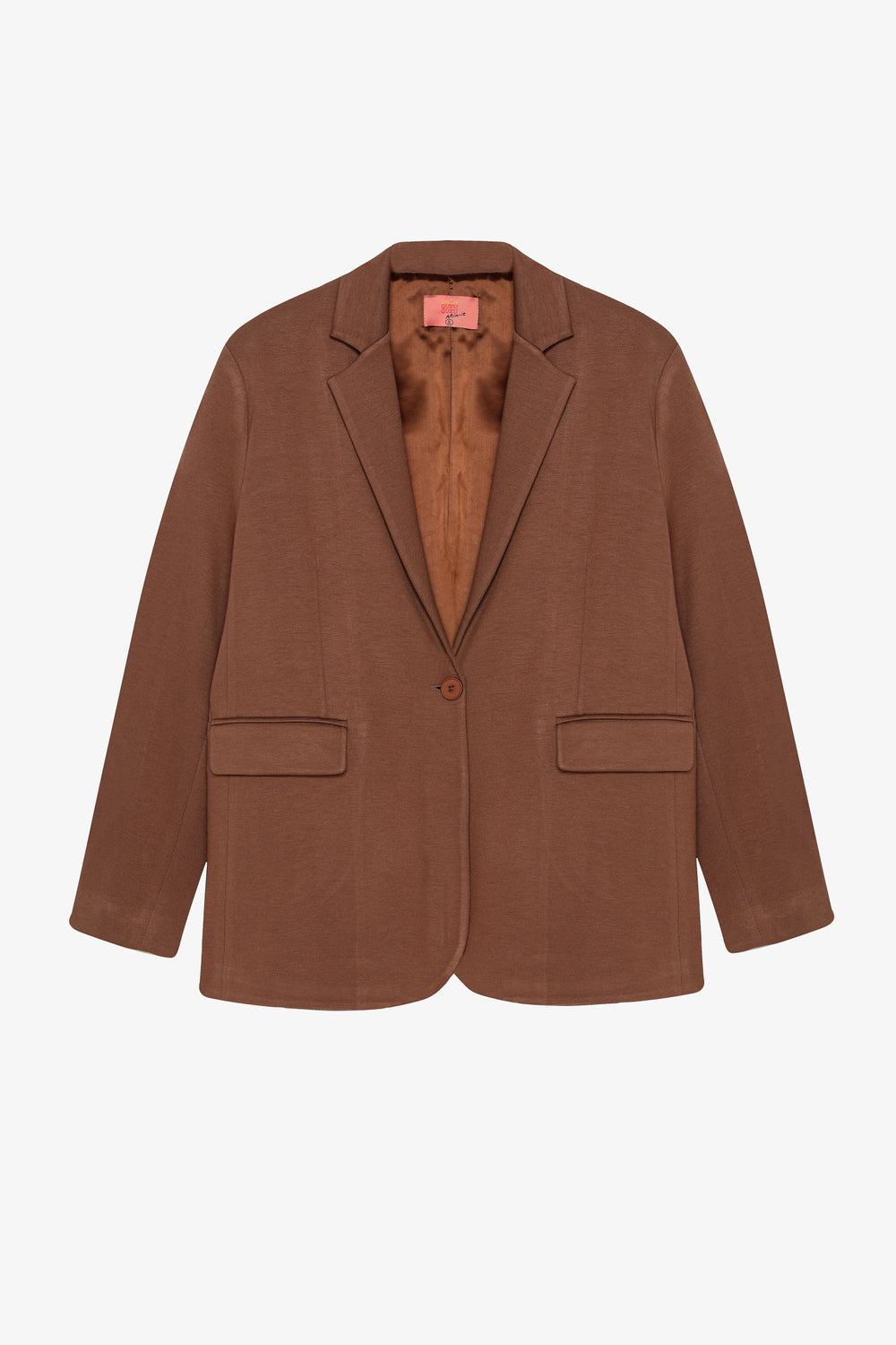 Tek Düğmeli Yumuşak Dokulu Oversize Blazer Ceket Kahverengi