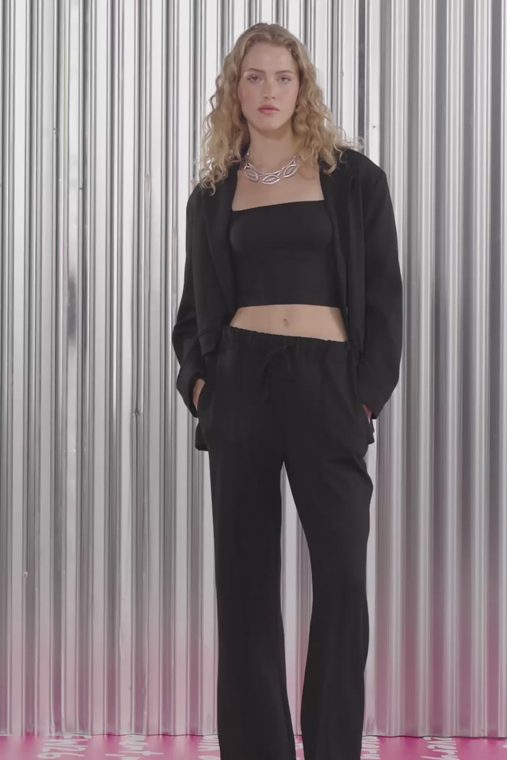 İçi kendi renginden astarlı, klasik yaka, tek düğme kapamalı, uzun kollu, cep kapaklı, yumuşak dokulu kumaştan, oversize kesim blazer ceket.