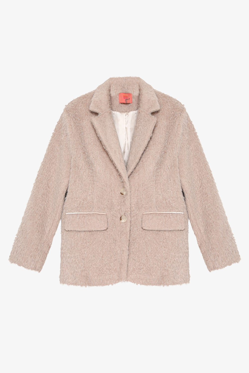 Tüylü Dokulu Oversize Blazer Ceket Bej