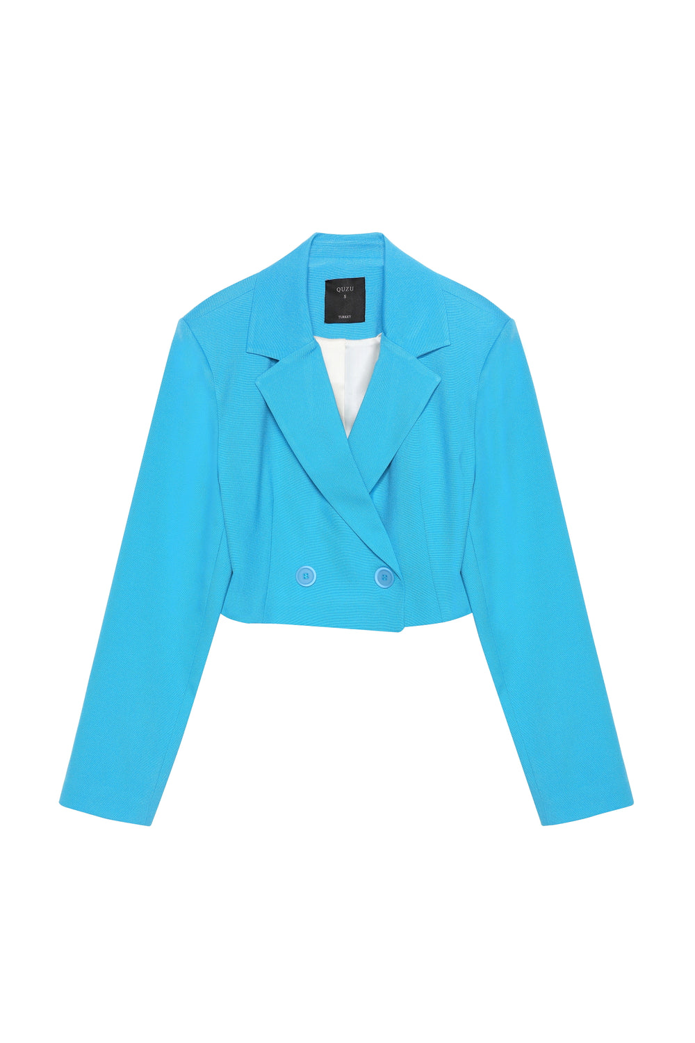 Kruvaze yaka, içi astarlı, uzun kollu, çift düğme detaylı, crop blazer ceket
