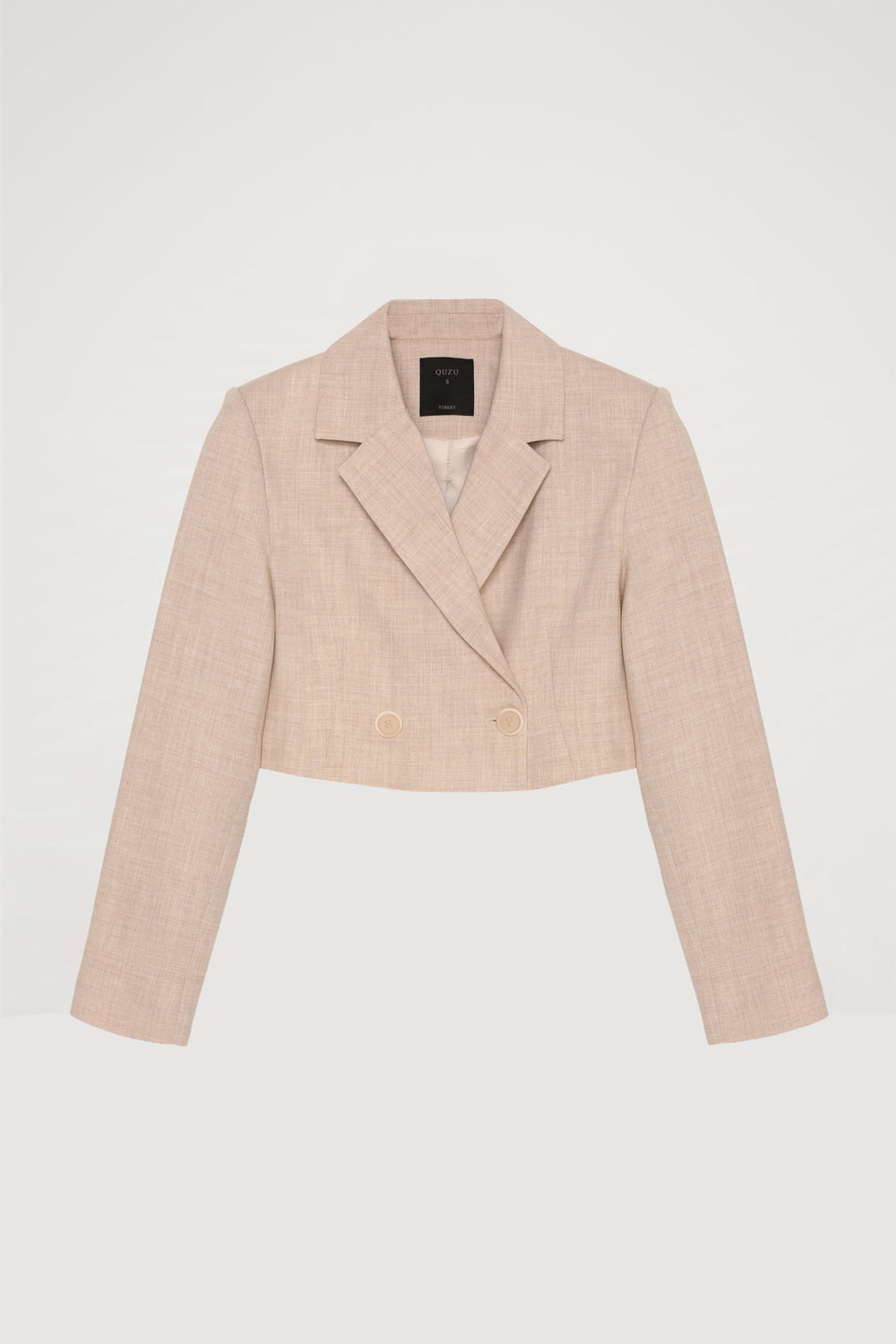 Kruvaze yaka, içi astarlı, uzun kollu, çift düğme detaylı, crop blazer ceket