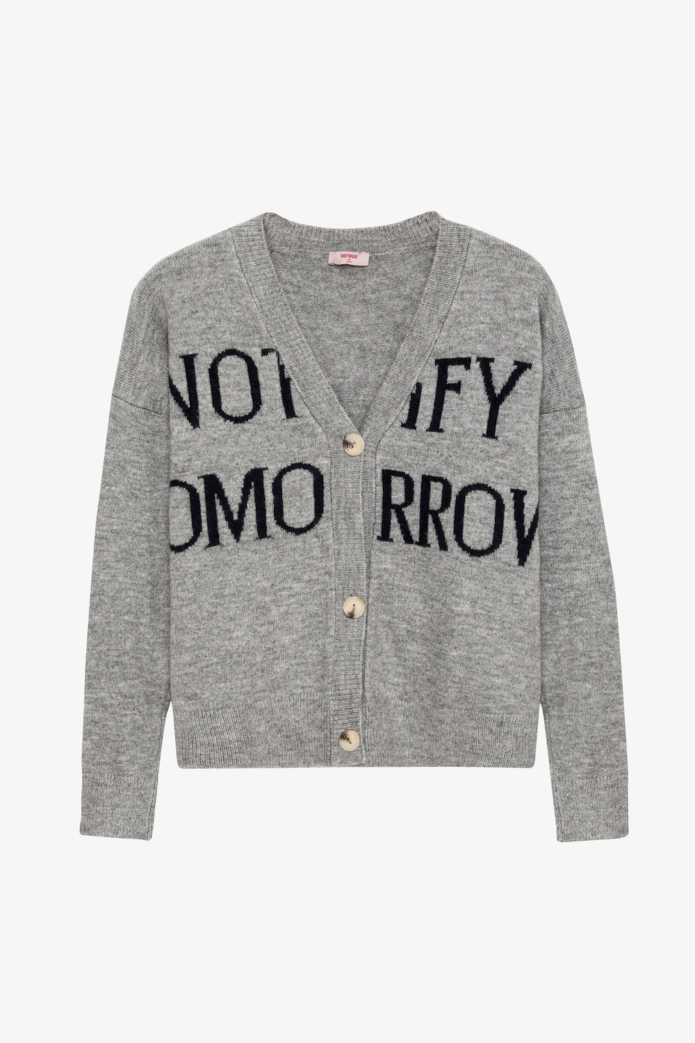 Yazı Desenli Düğmeli Oversize Triko Hırka Gri