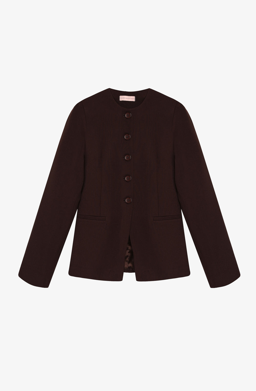 Yuvarlak Yaka Düğmeli Blazer Ceket Koyu Kahve