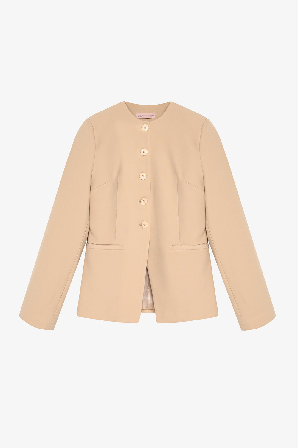 Yuvarlak Yaka Düğmeli Blazer Ceket Taş