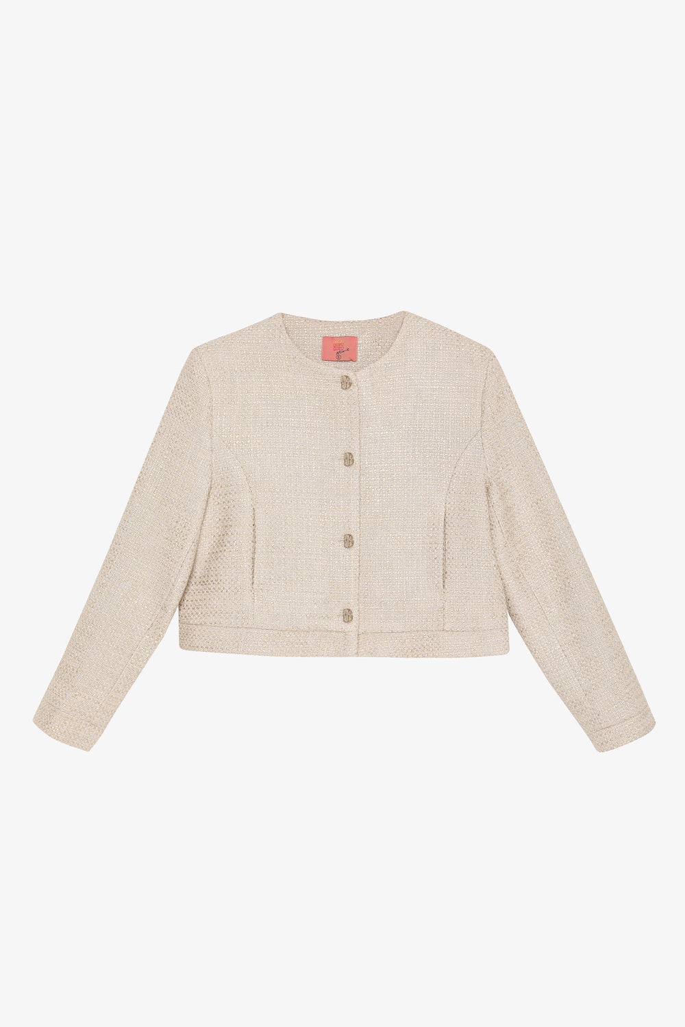 Yuvarlak Yaka Düğmeli Tüvit Ceket Bej