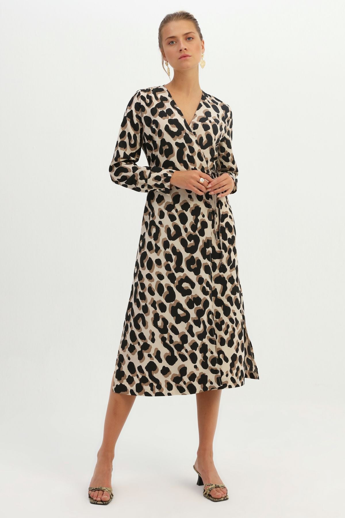 In addition to having an elegant design, all eyes are on her with a wrap dress that is ready to accompany you on magnificent evenings with its moving lines.