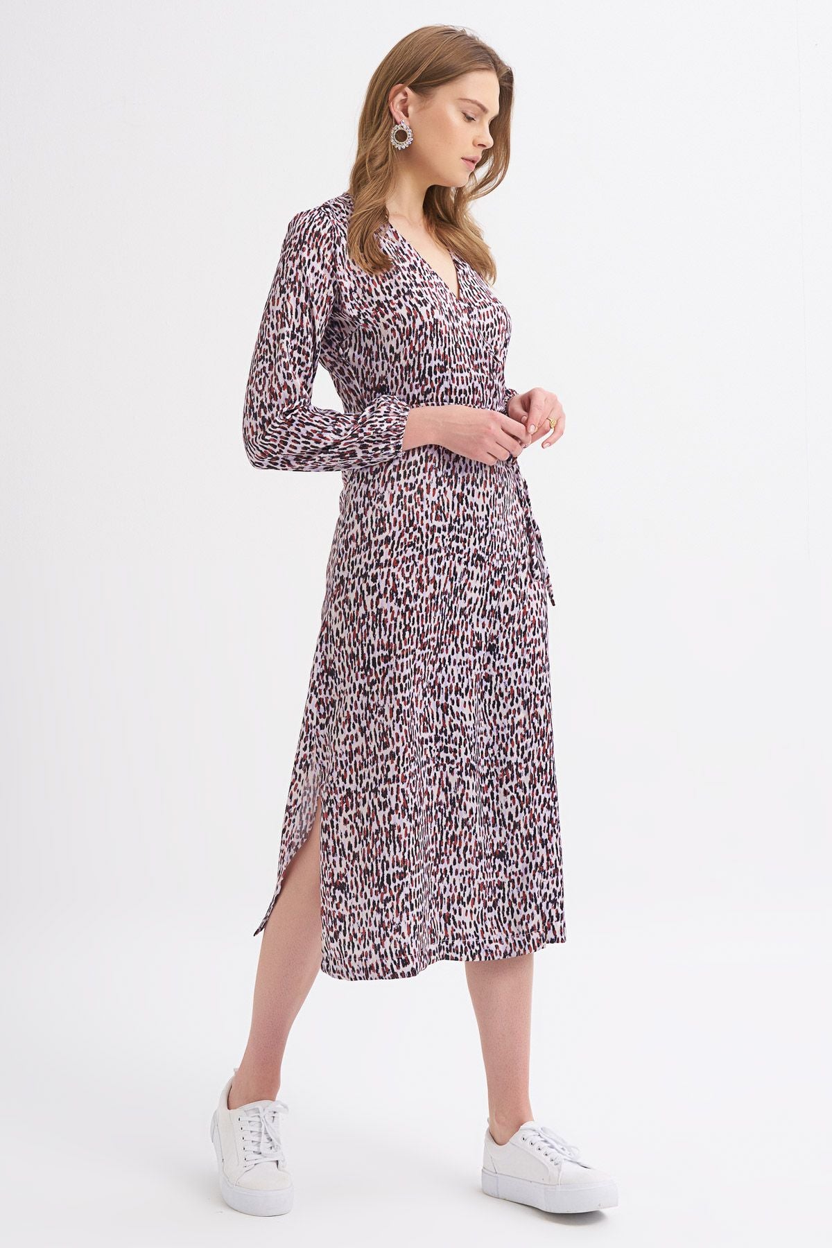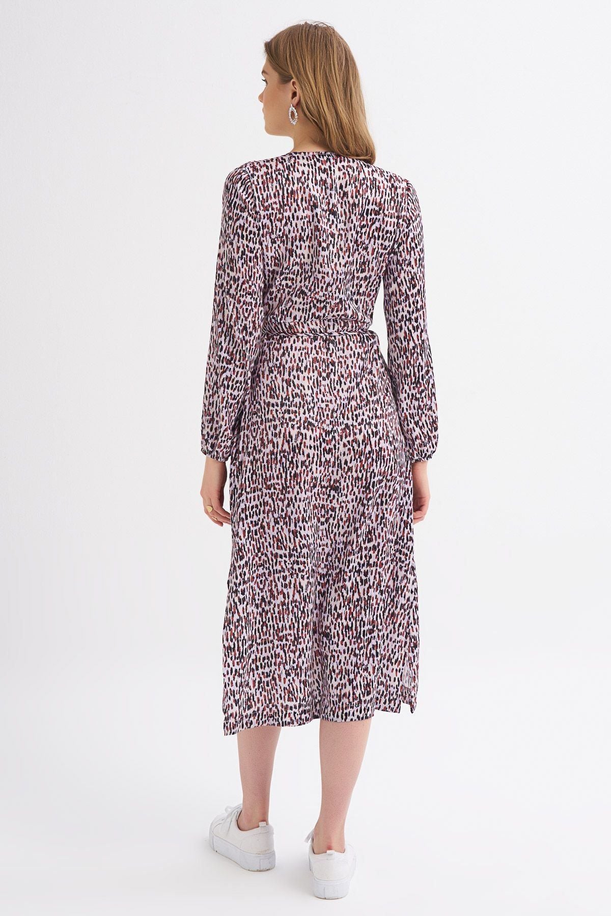 Patterned Slit Detailed Wrapped Dress Lilac
