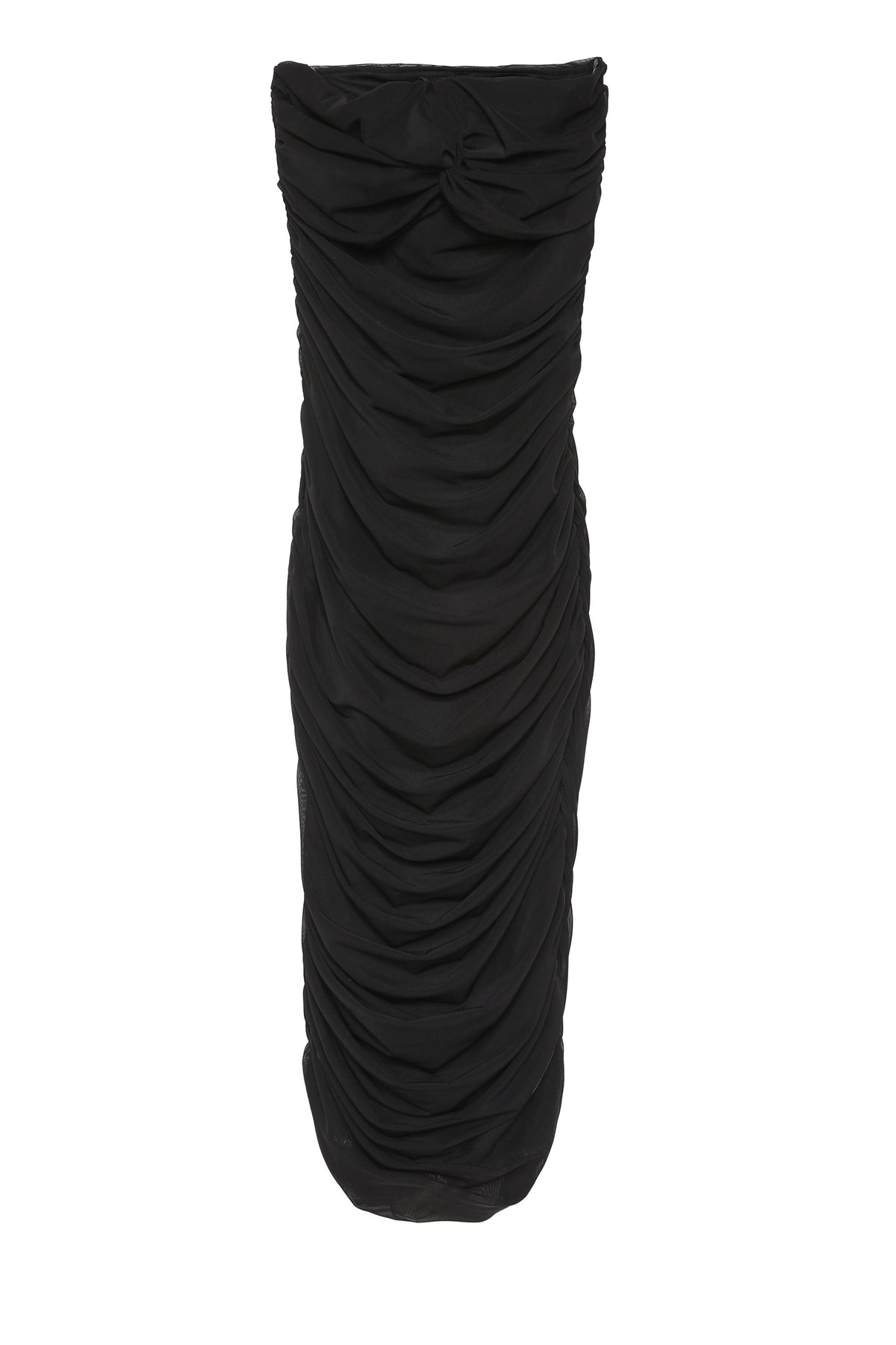 Drape Detaylı Straplez Midi Elbise Siyah