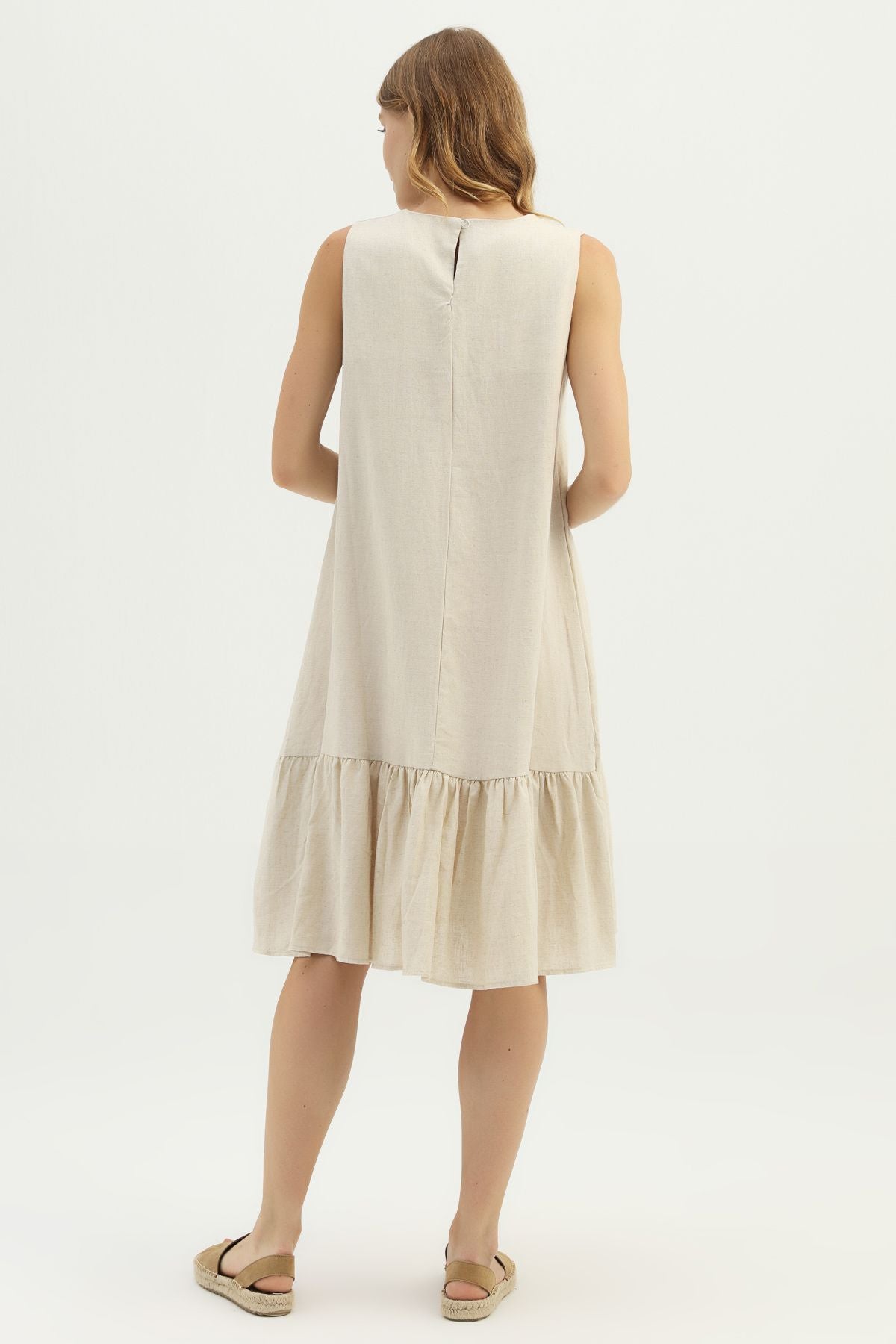 Frilly Hem Linen Dress Natural