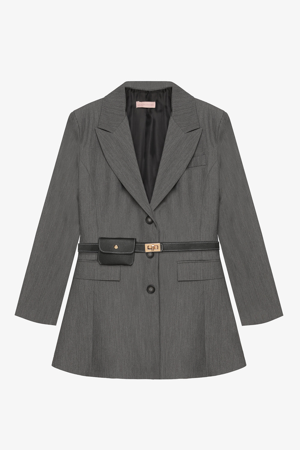Kemerli Çanta Aksesuarlı Blazer Ceket Elbise Gri