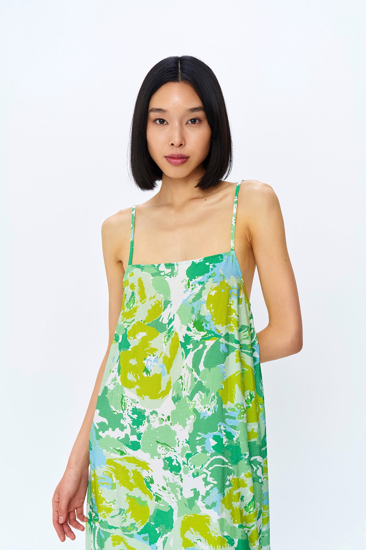 Renkli Desenli Askılı Uzun Elbise Mint
