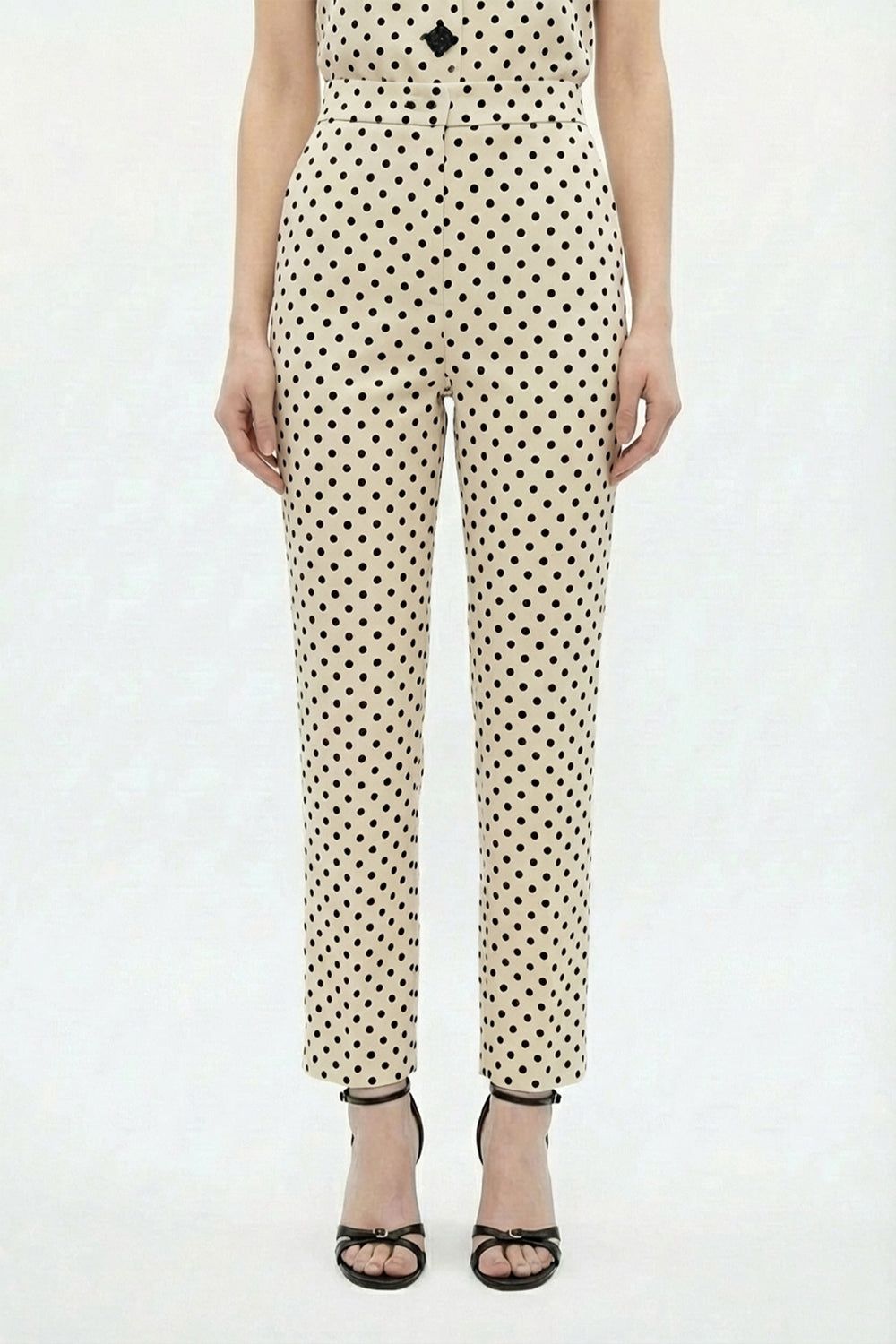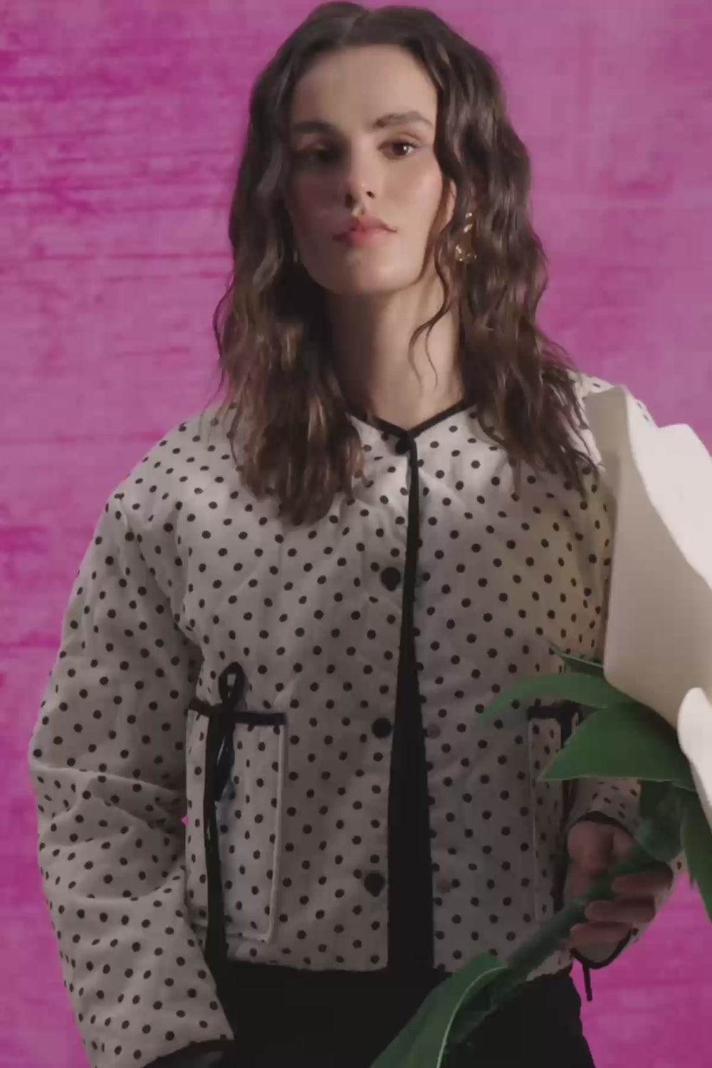 Puantiyeli Bağcıklı Kapitone Ceket Krem